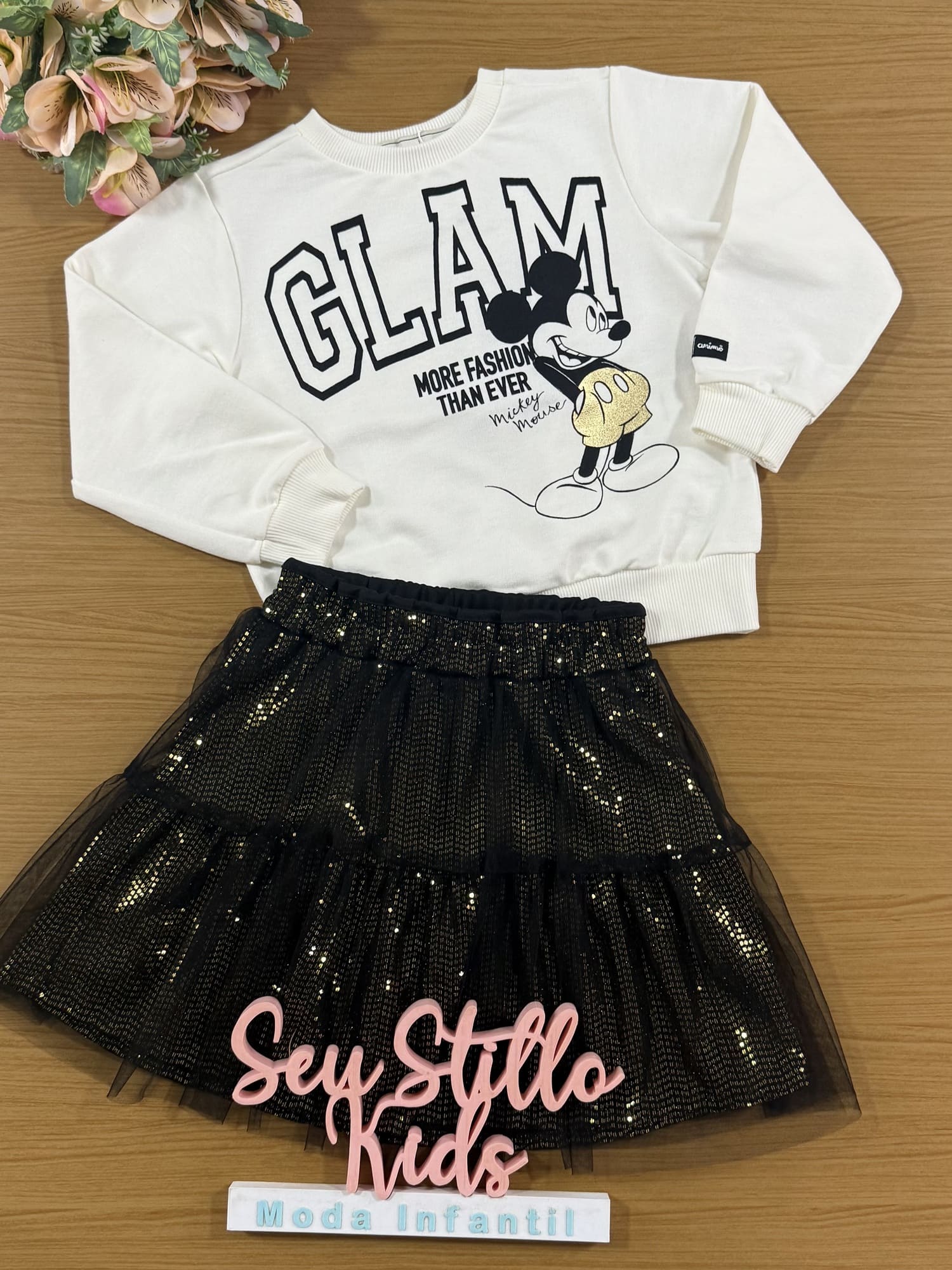 Conjunto Infantil Animê Inverno com Saia e Casaco Mickey Disney