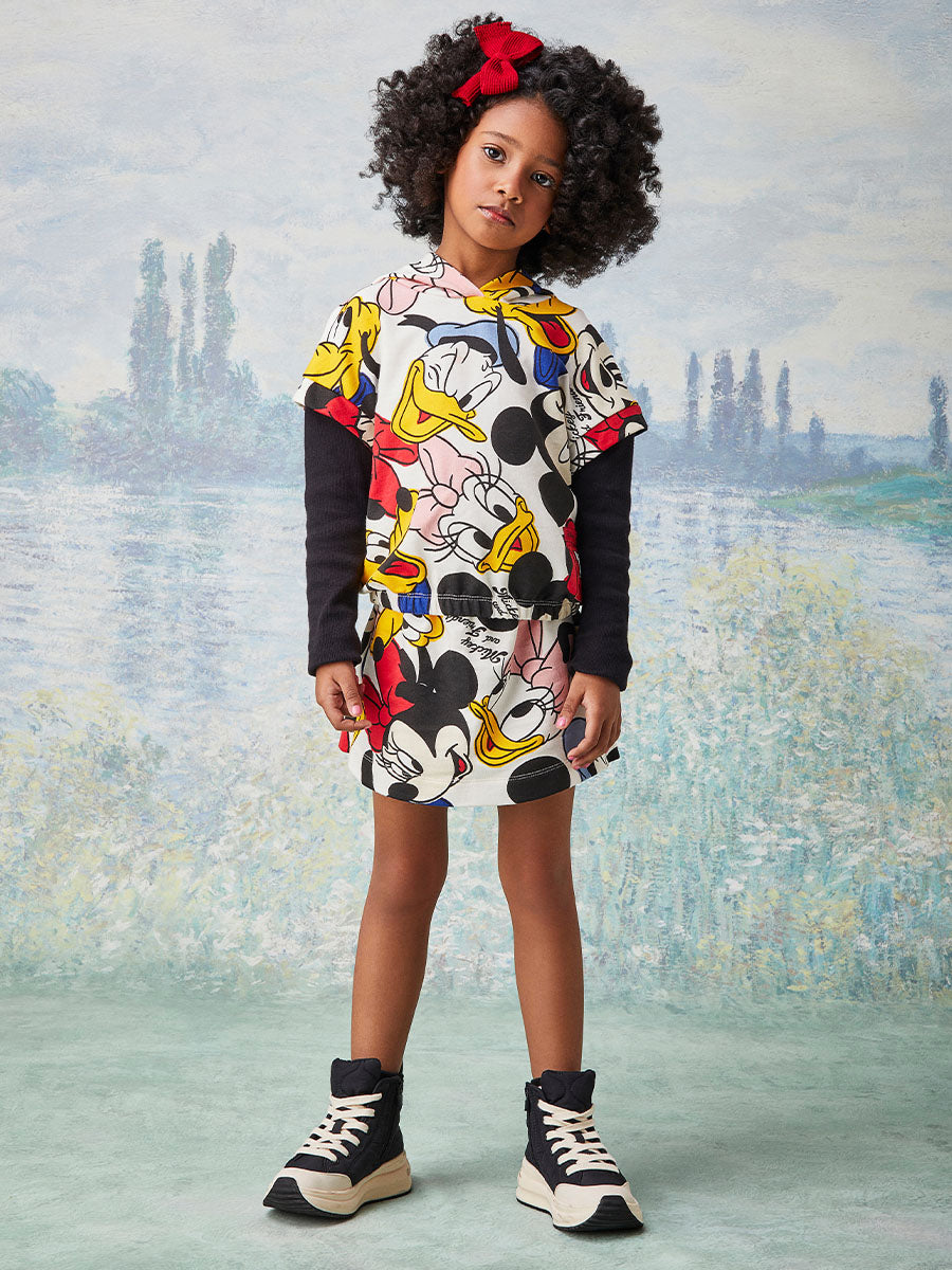 Conjunto Infantil Animê Inverno Shorts Saia e Blusa Com Capuz Mickey And Friends Disney