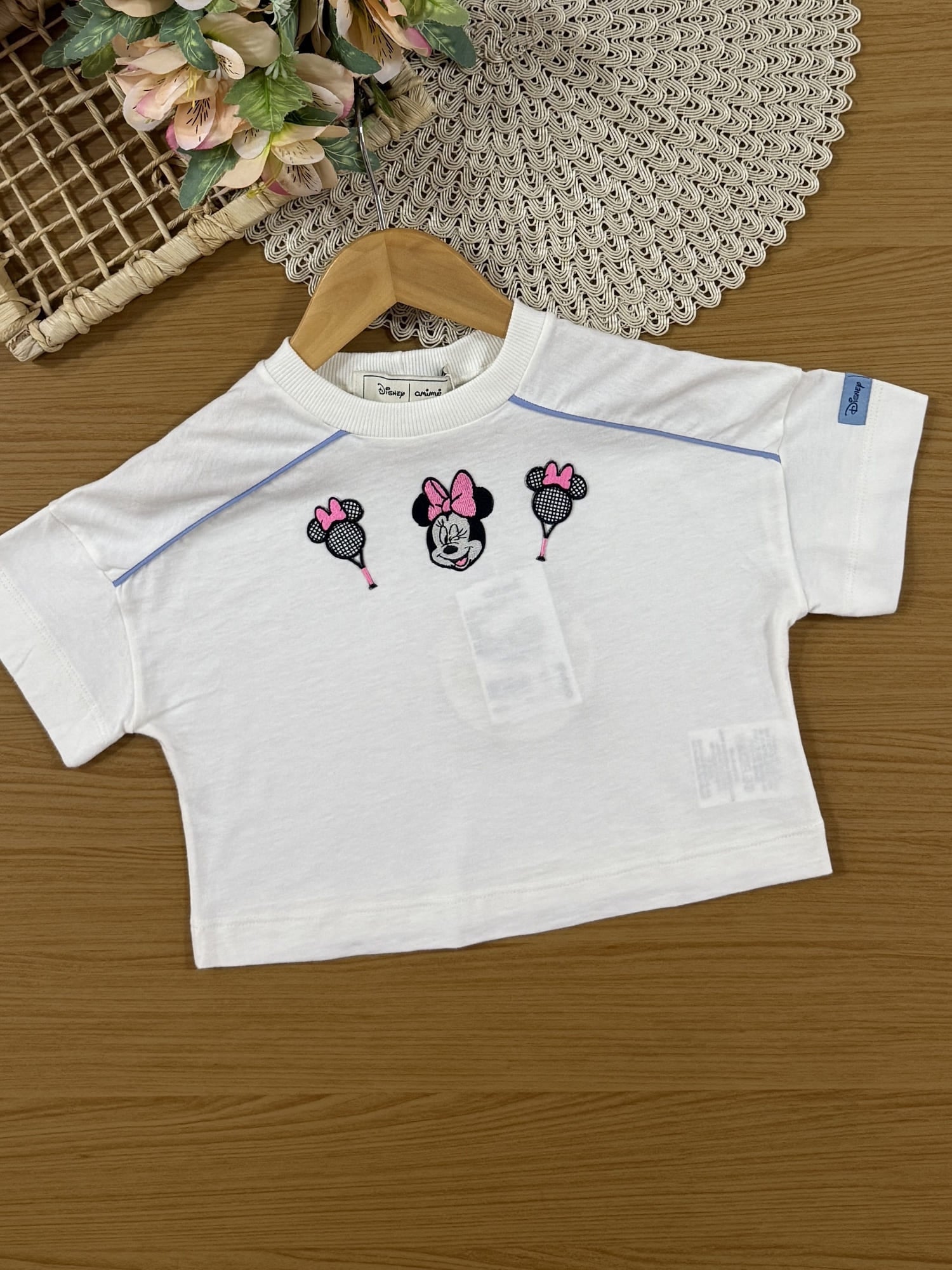 Conjunto Infantil Animê Verão com Shorts Saia Azul e Blusa Branca Minnie Tênista Disney