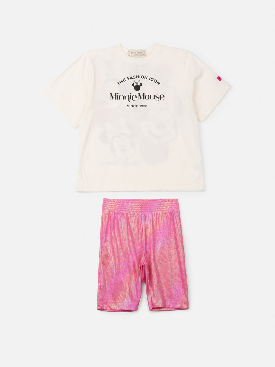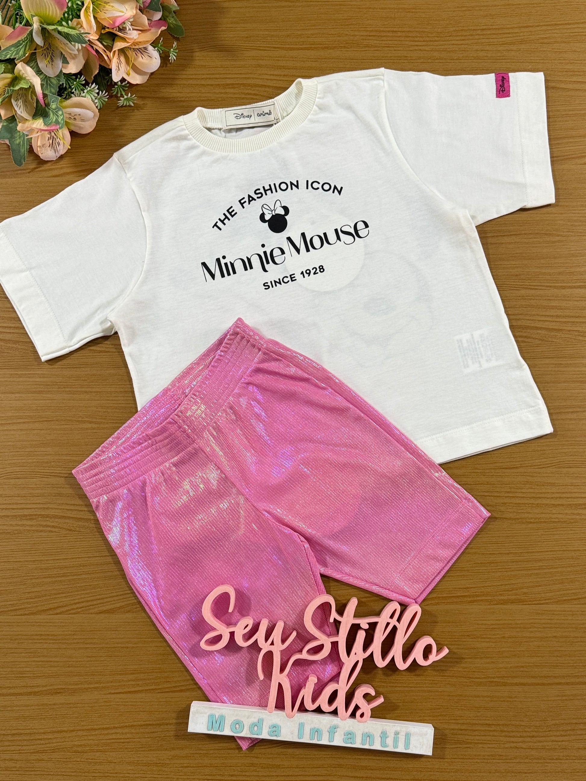 Conjunto Infantil Animê Verão Shorts Ciclista Rosa e Blusa Minnie Disney