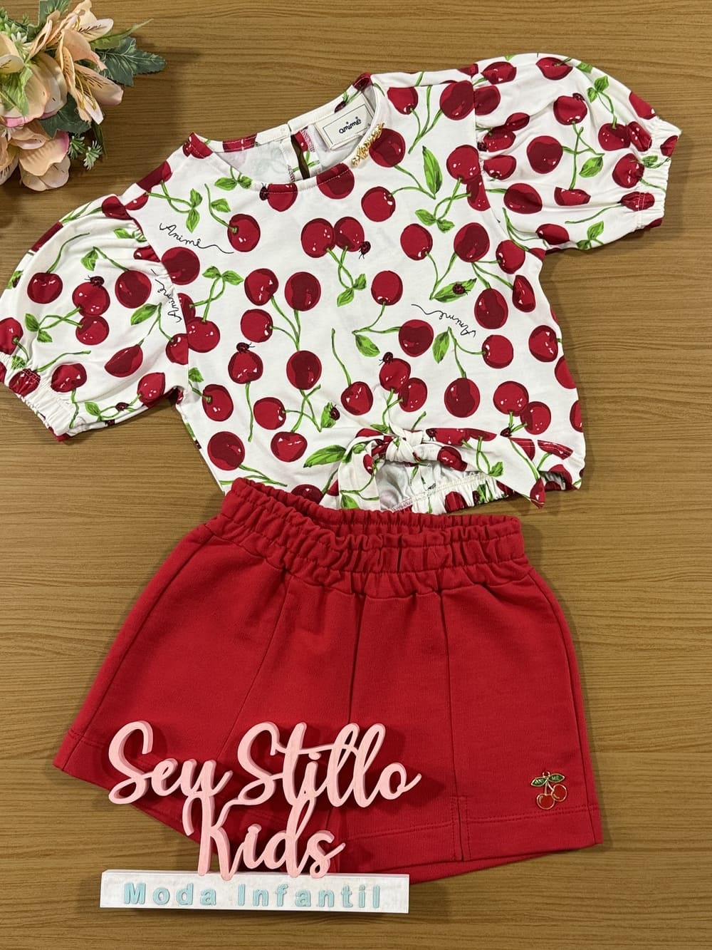Conjunto Infantil Animê Verão Shorts Vermelho e Blusa Cereja