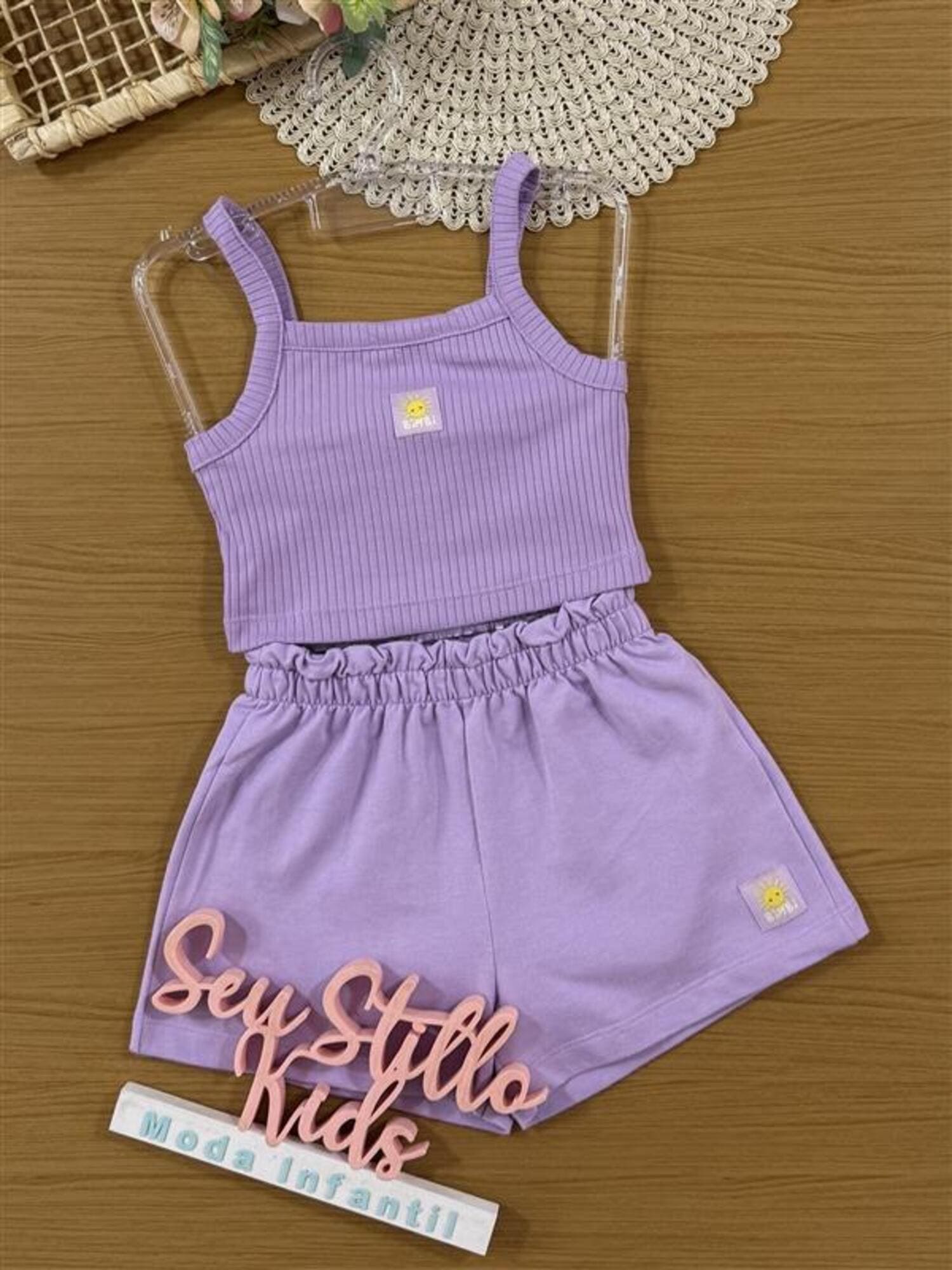 Conjunto Infantil Bimbi Verão com Shorts e Regata Lilás Solzinho