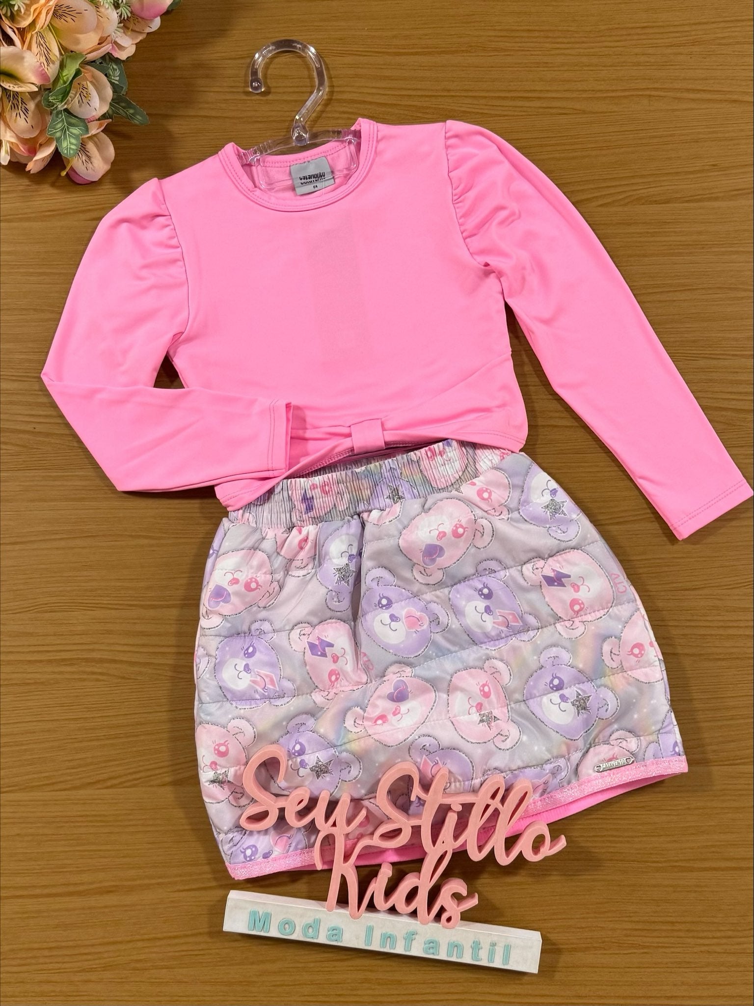 Conjunto Infantil Catavento Inverno com Blusa Manga Longa e Saia Ursinhos