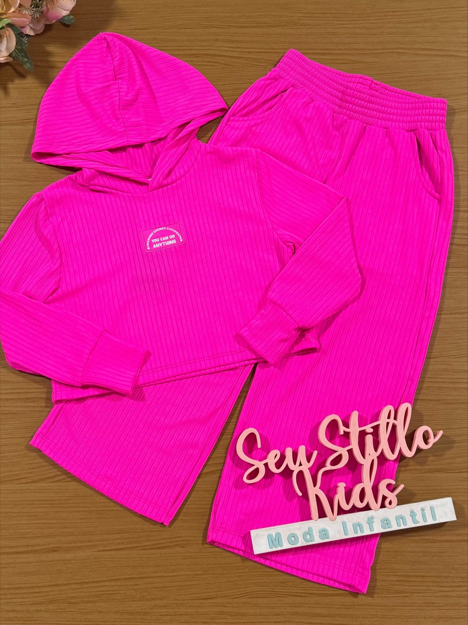 Conjunto Infantil Catavento Inverno com Calça e Blusa Pink Neon