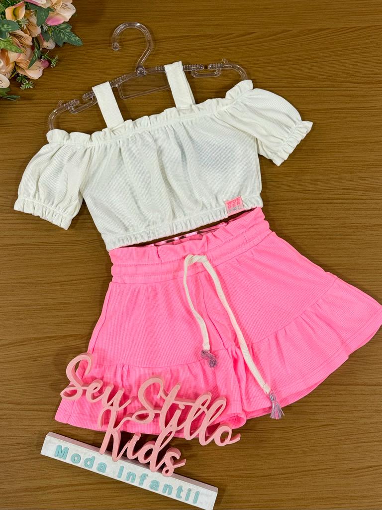 Conjunto Infantil Catavento Verão Com Shorts Rosa e Blusa Off