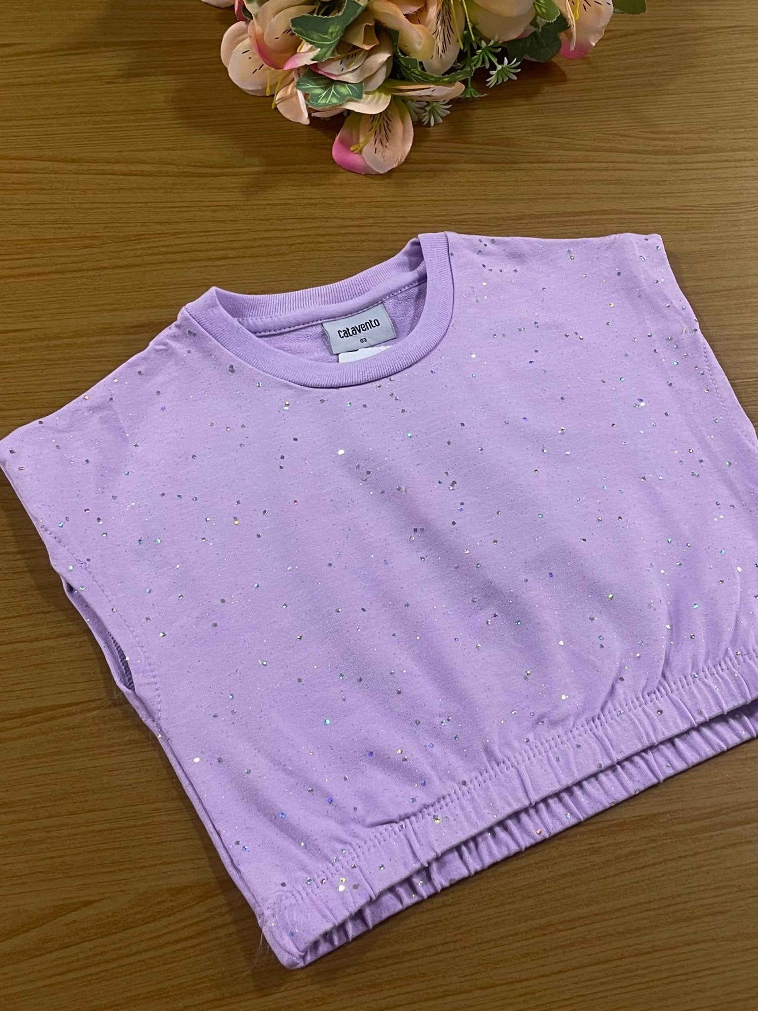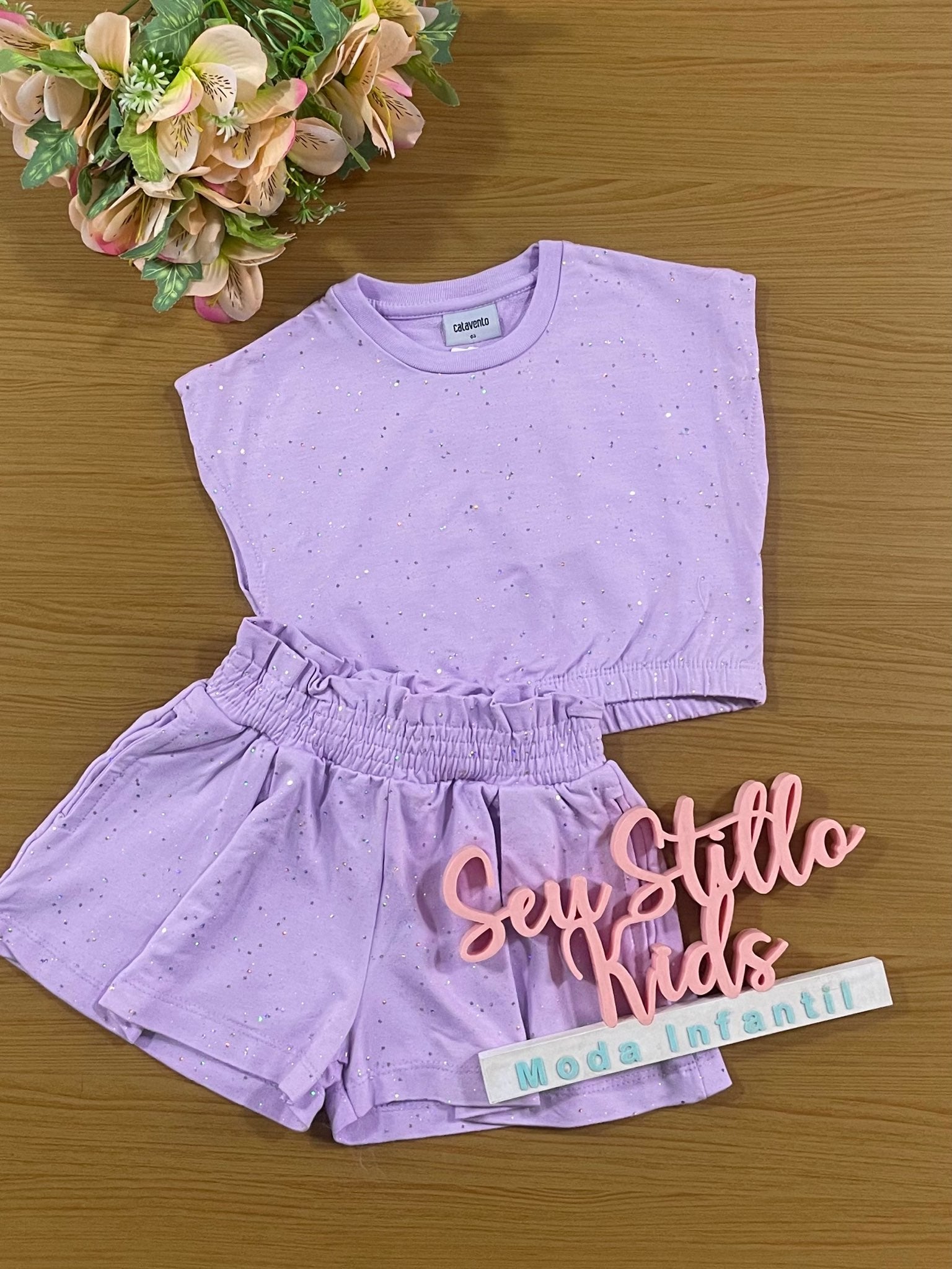 Conjunto Infantil Catavento Verão Shorts e Blusa Lilás Brilhante
