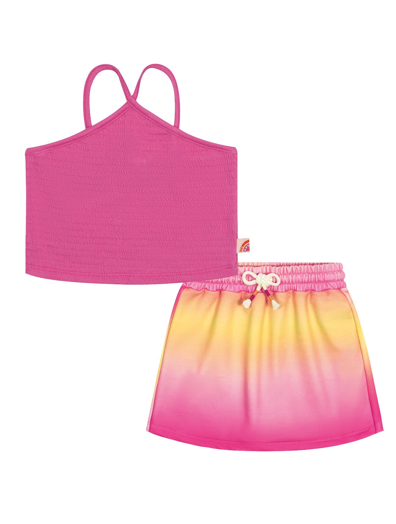 Conjunto Infantil Catavento Verão Shorts Saia Color e Blusa Rosa