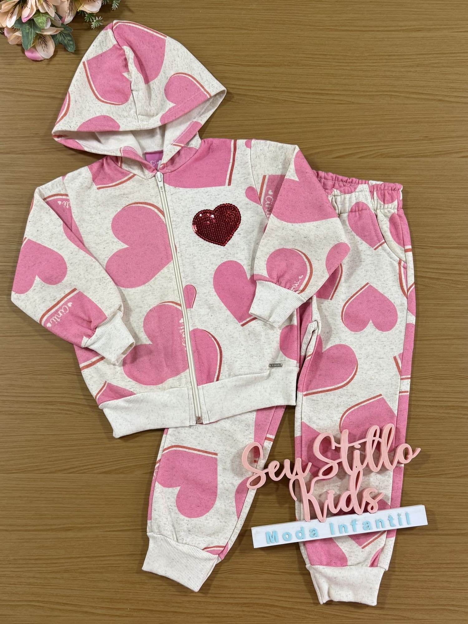 Conjunto Infantil Cinti Inverno Calça e Moletom Flanelado Coração