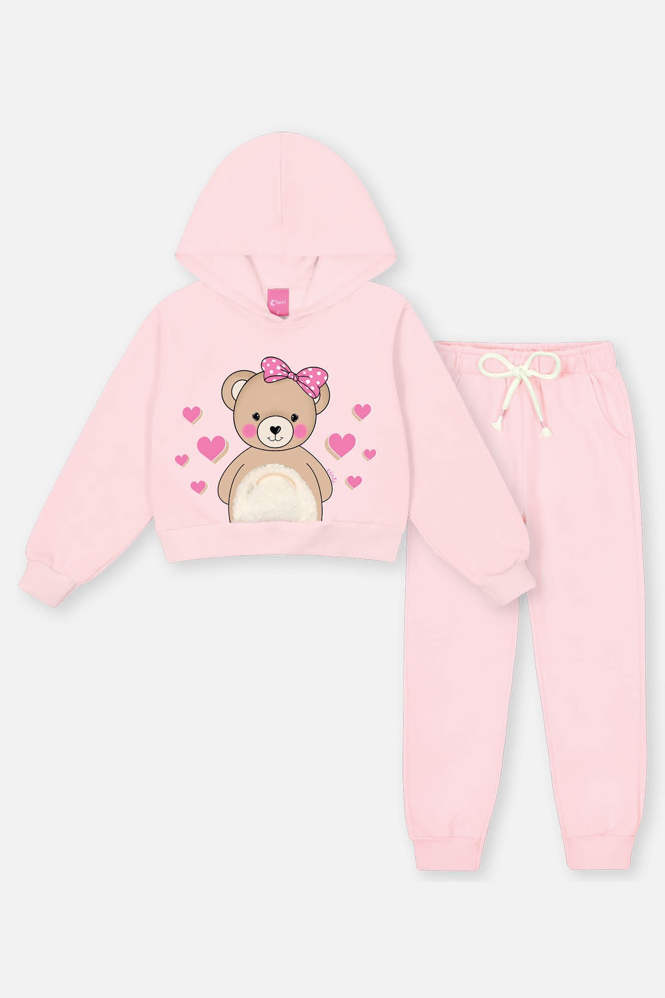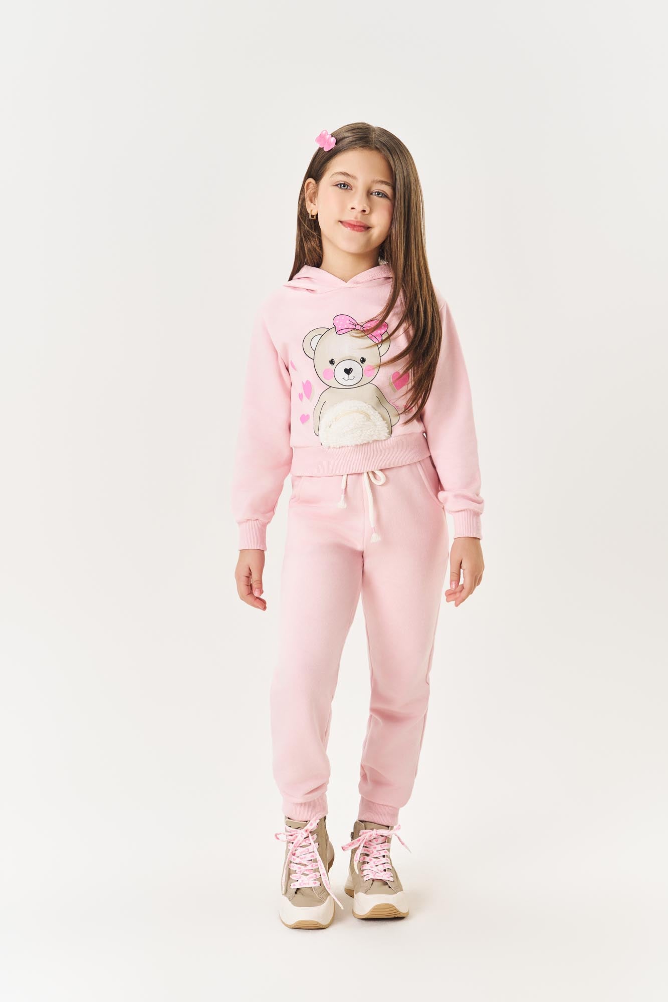 Conjunto Infantil Cinti Inverno Calça e Moletom Flanelado Rosa Ursinha com Bolso