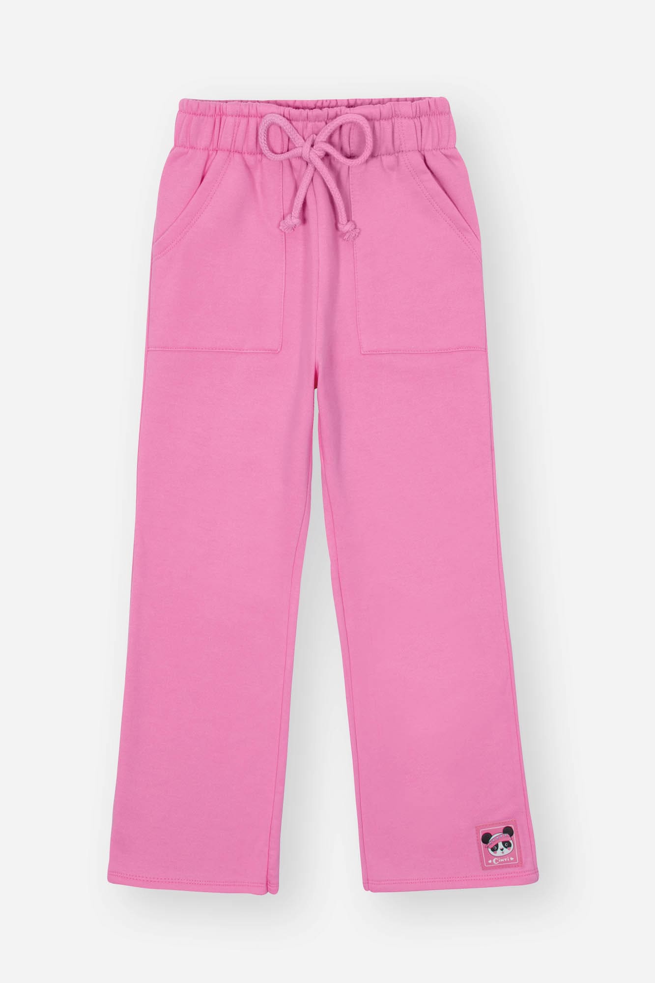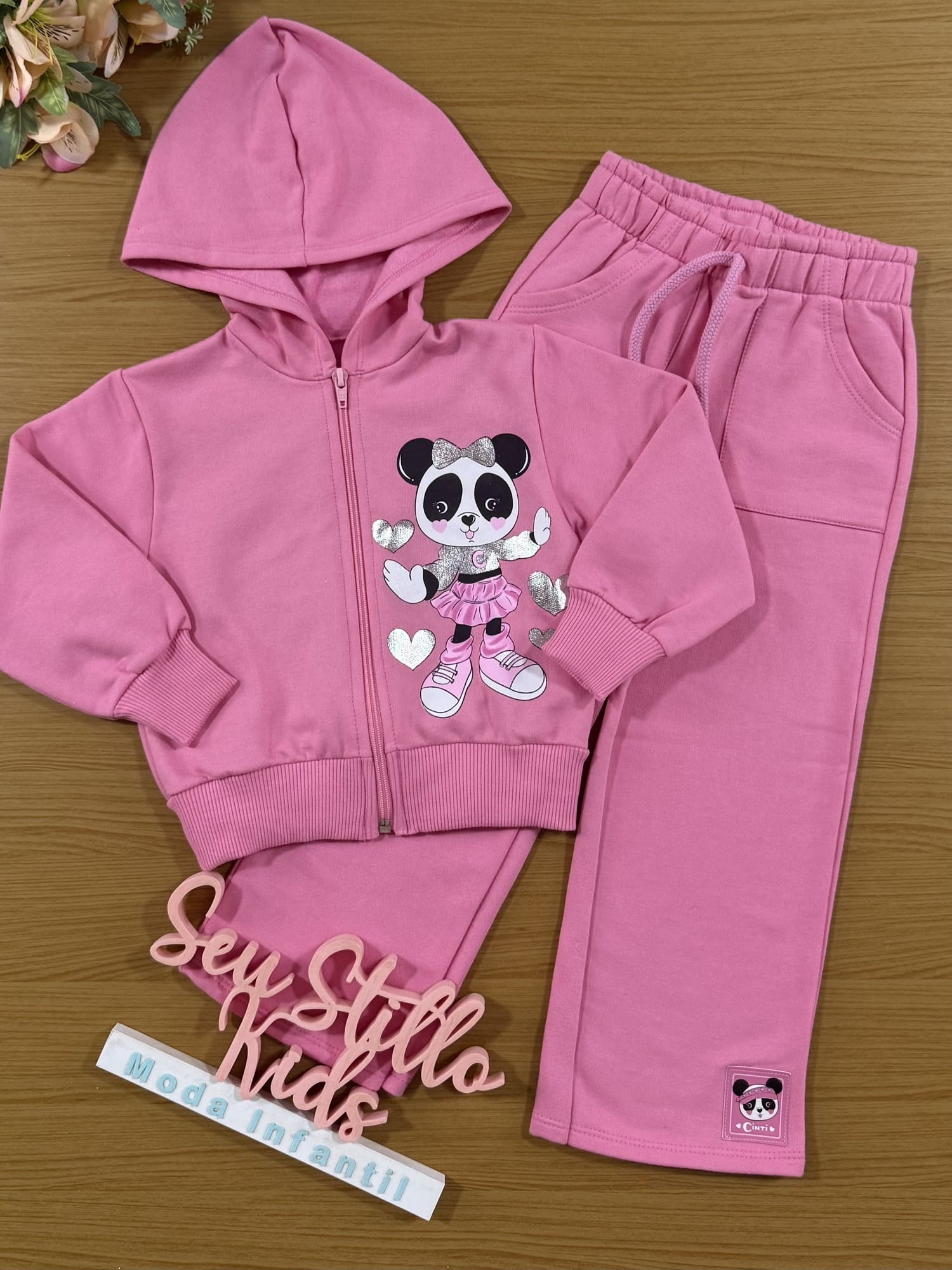 Conjunto Infantil Cinti Inverno Calça Wide Leg e Moletom Flanelado Rosa Panda