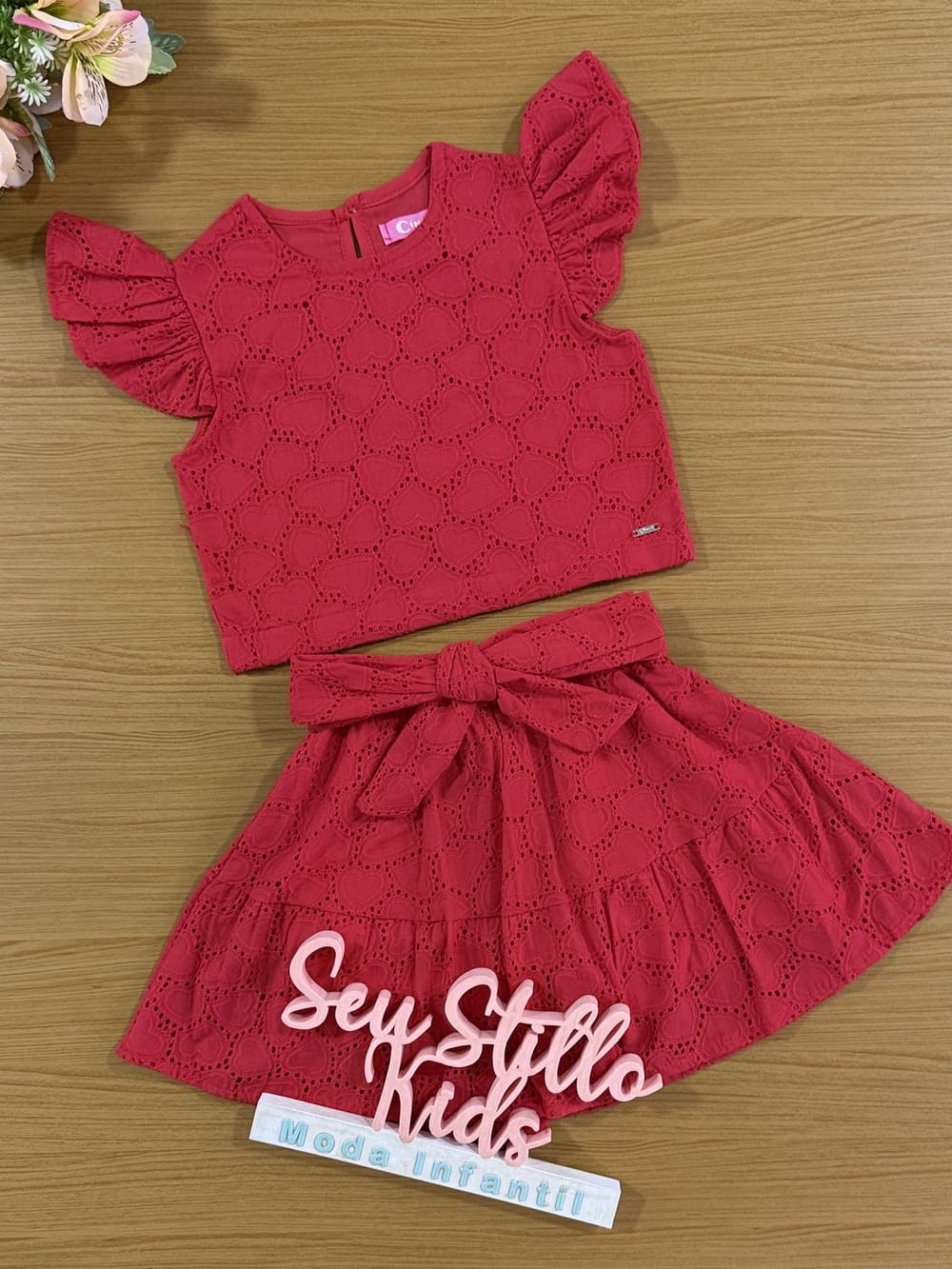 Conjunto Infantil Cinti Verão Com Saia e Blusa Vermelha Laise Natal