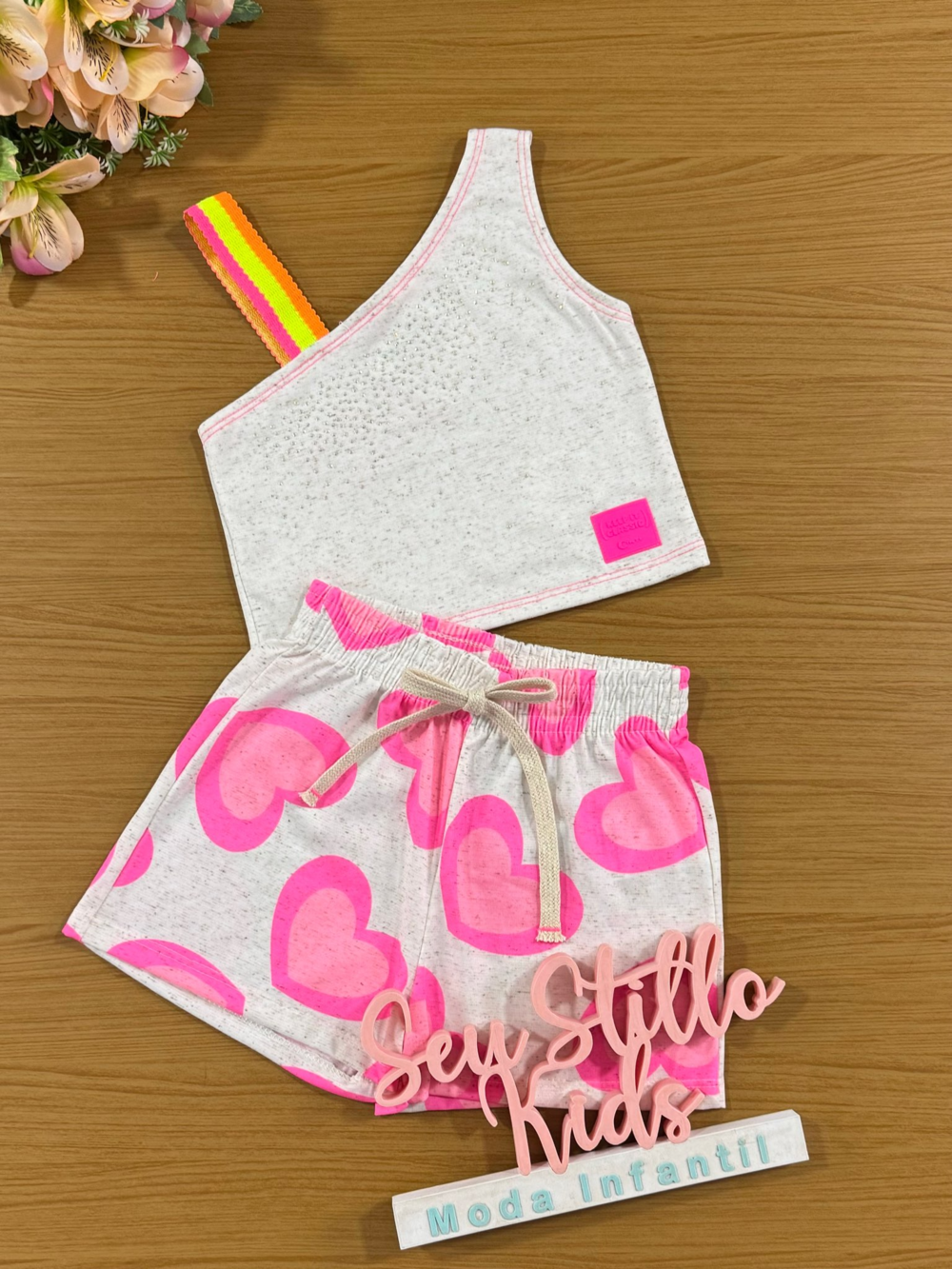 Conjunto Infantil Cinti Verão com Shorts Coração Rosa e Blusa