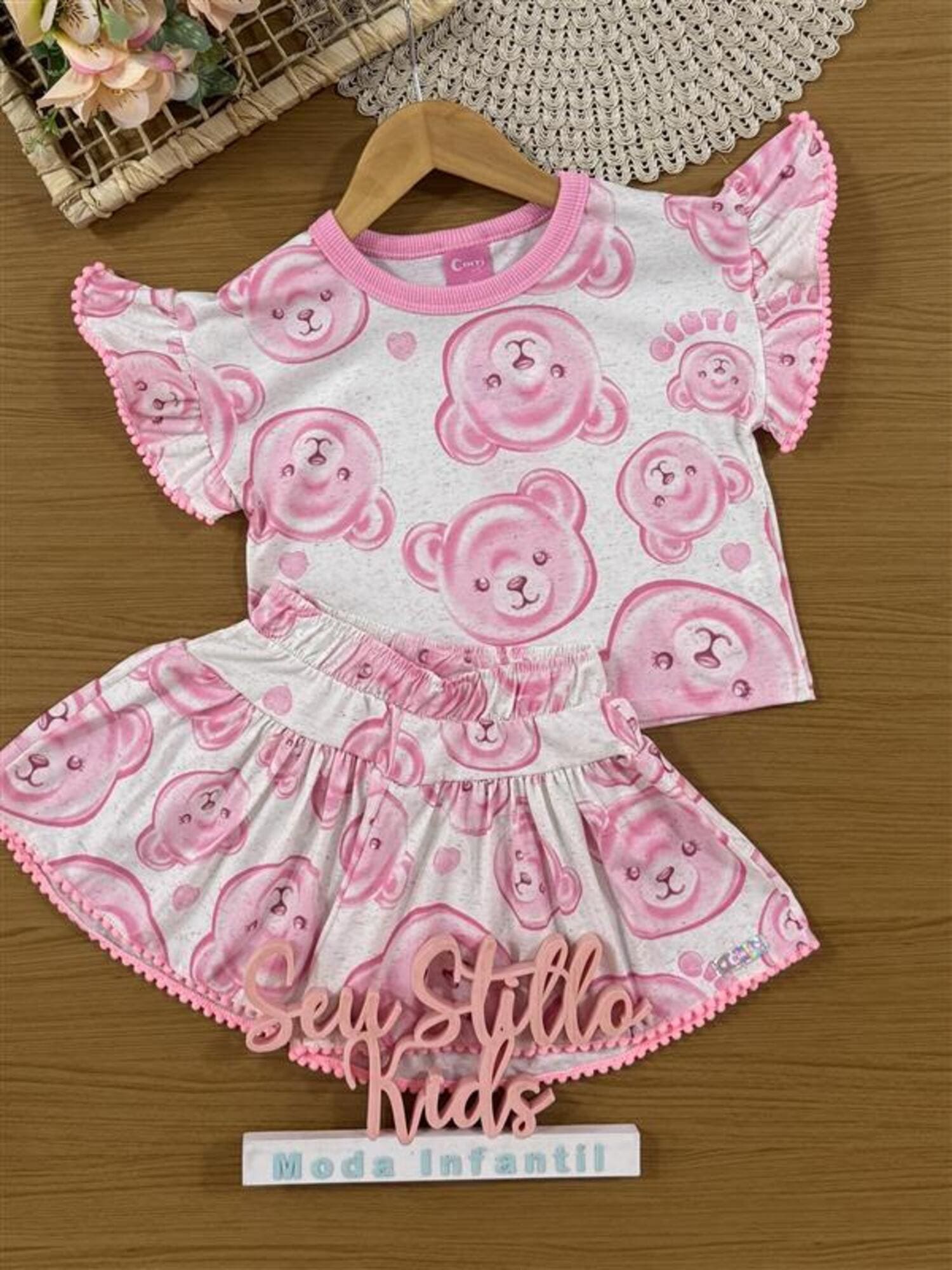 Conjunto Infantil Cinti Verão com Shorts e Blusa Rosa Ursinhas