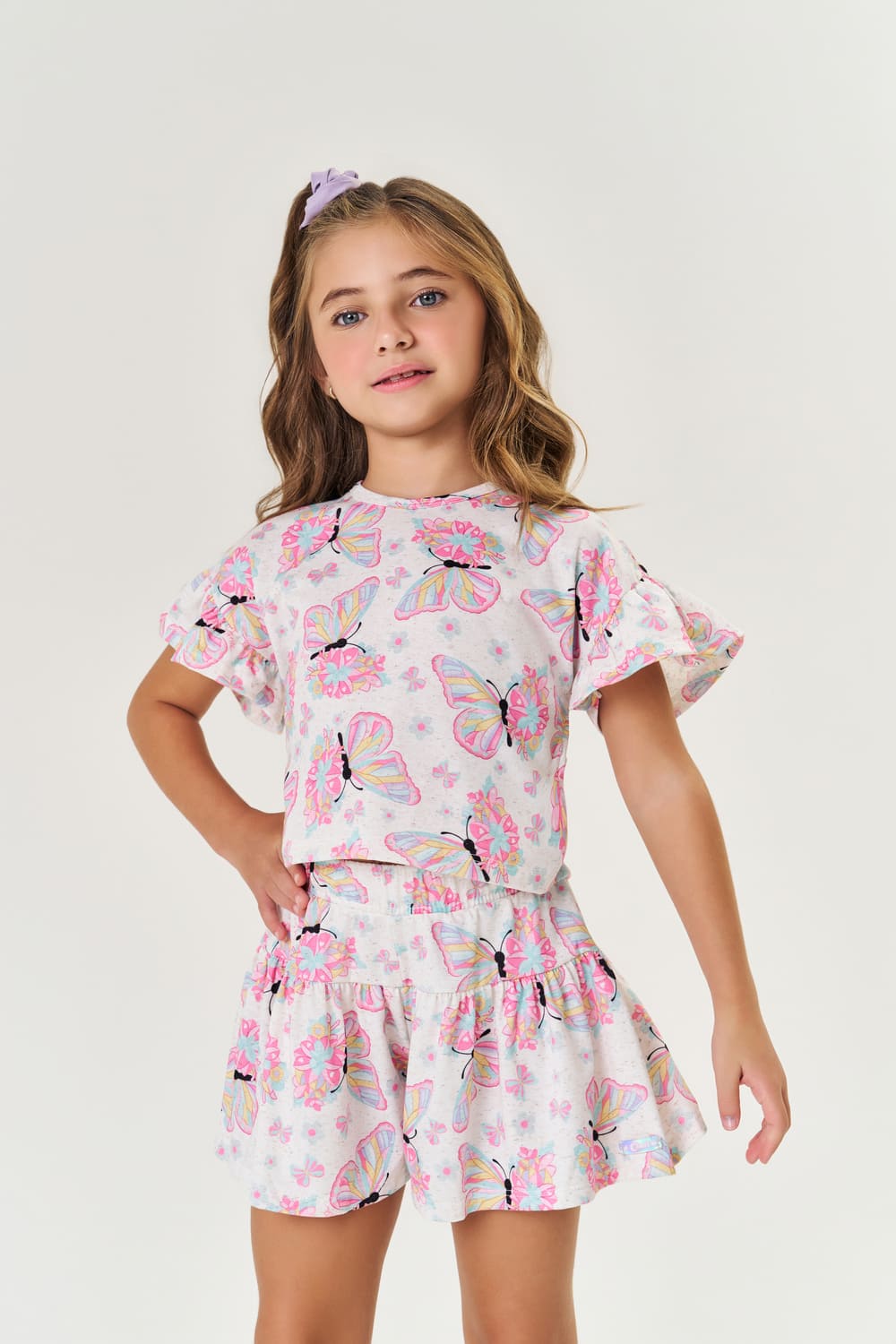 Conjunto Infantil Cinti Verão Shorts e Blusa Borboleta Rosa