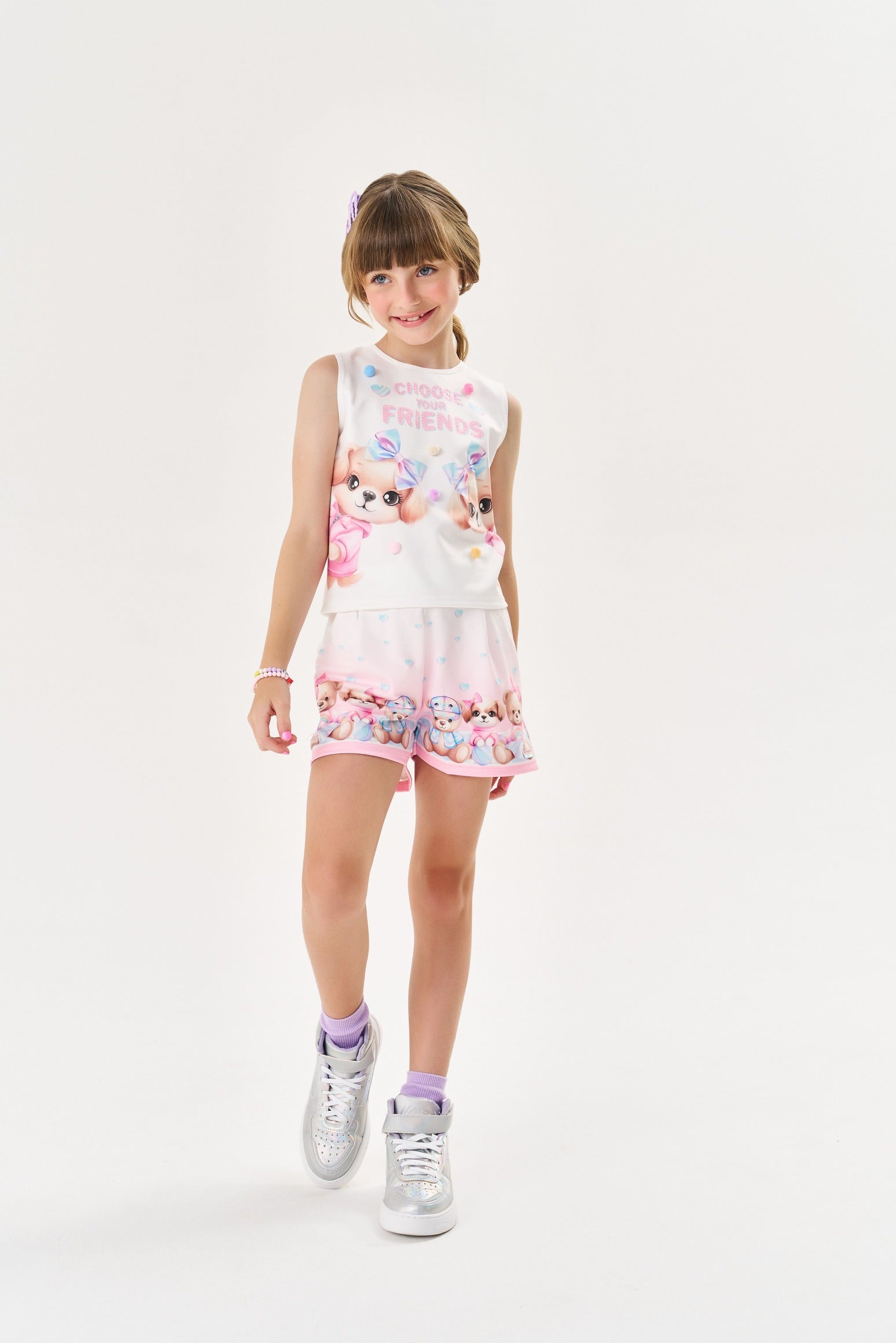 Conjunto Infantil Cinti Verão Shorts e Blusa Cachorrinhas