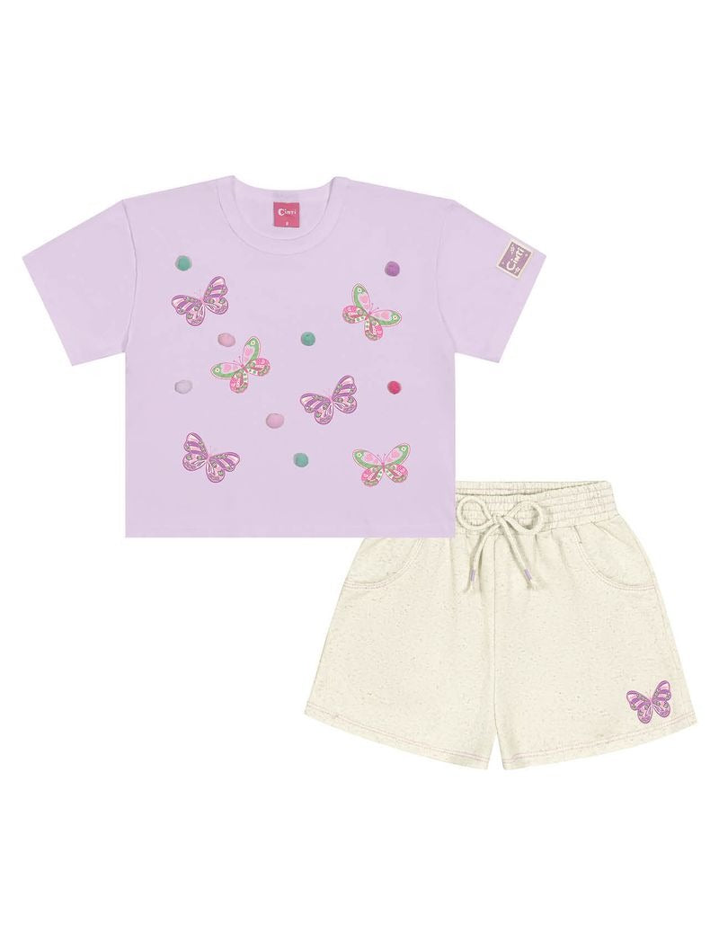 Conjunto Infantil Cinti Verão Shorts e Blusa Lilás Borboleta