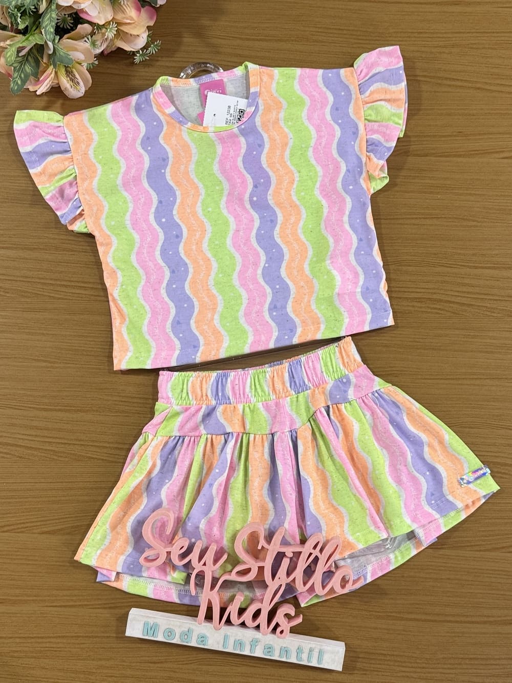 Conjunto Infantil Cinti Verão Shorts e Blusa Ondas Neon