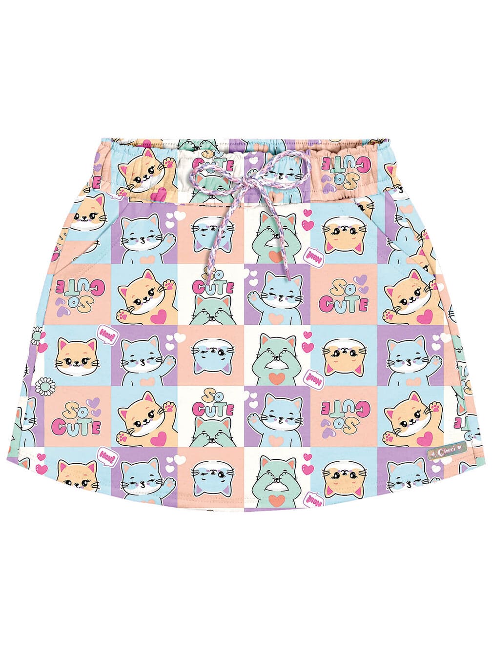 Conjunto Infantil Cinti Verão Shorts Saia e Blusa Azul Cute
