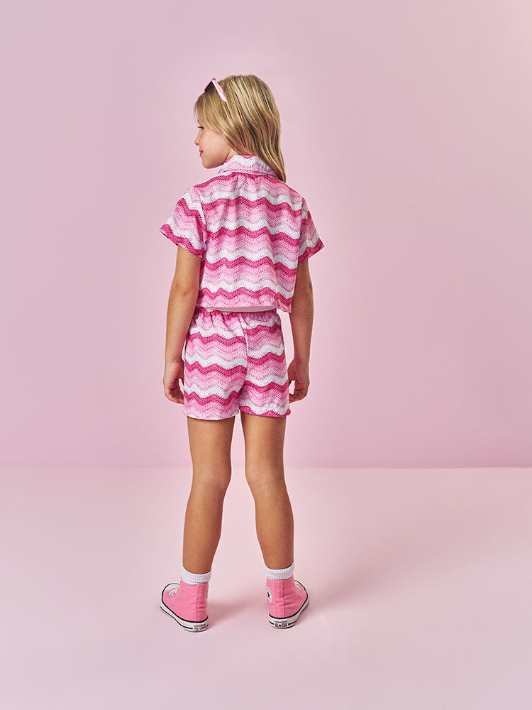 Conjunto Infantil Cinti Verão, Shorts Saia e Sobreposição Tricô 3D e Cropped Branca
