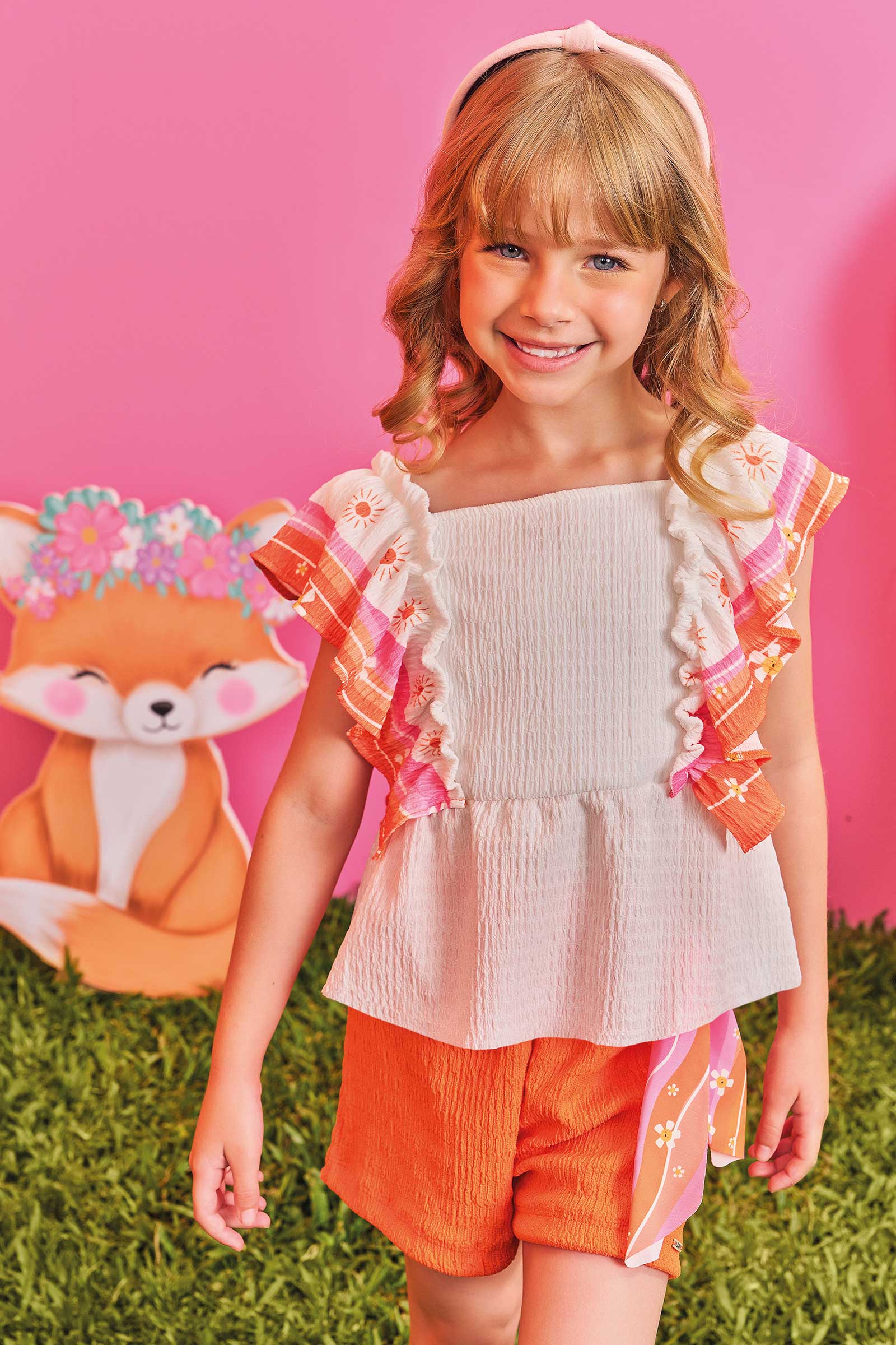 Conjunto Infantil Kukie Alecrim Shorts Laranja e Bata Solzinho