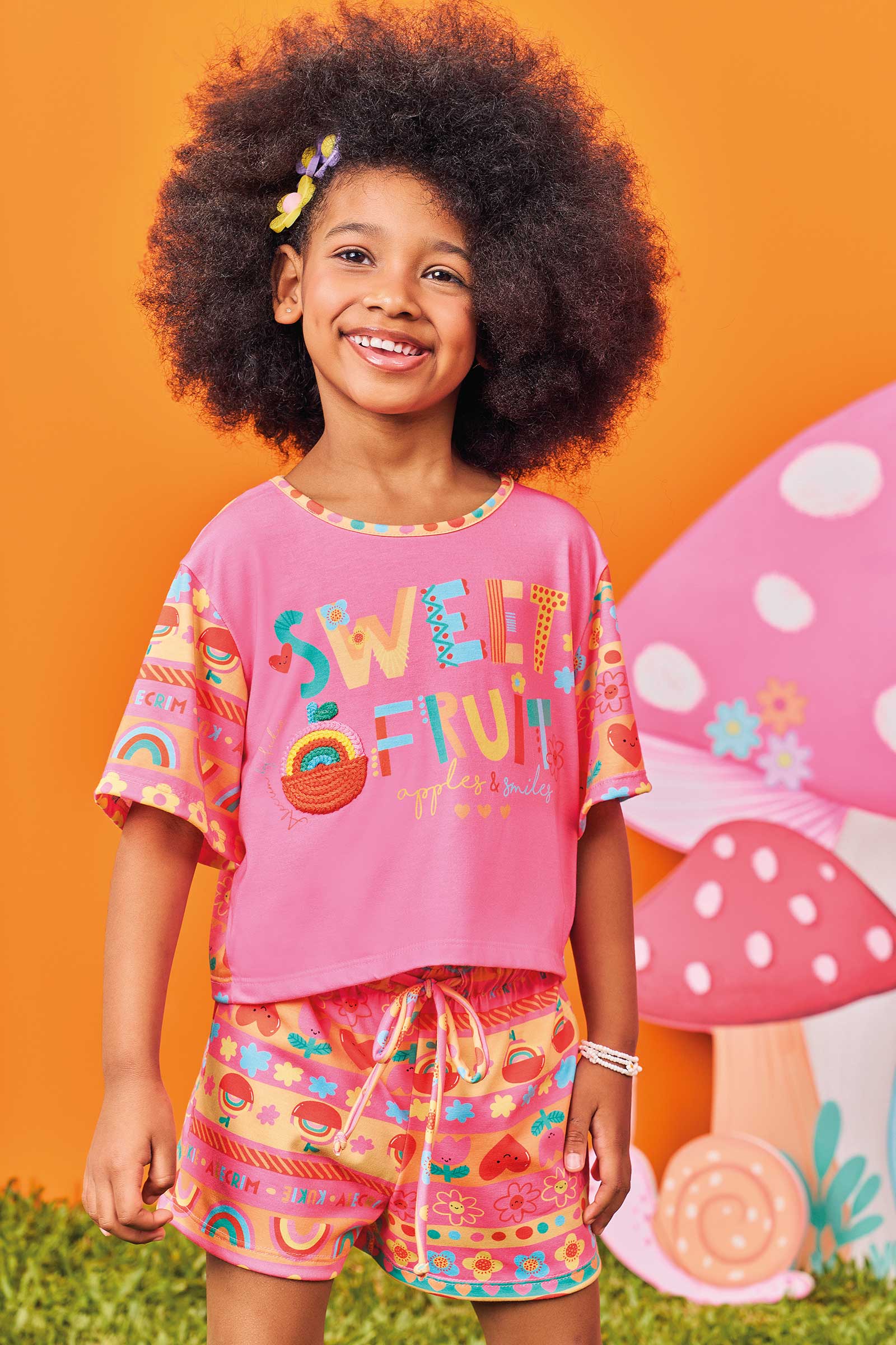 Conjunto Infantil Kukie Alecrim Verão Shorts e Blusa Sweet Fruit