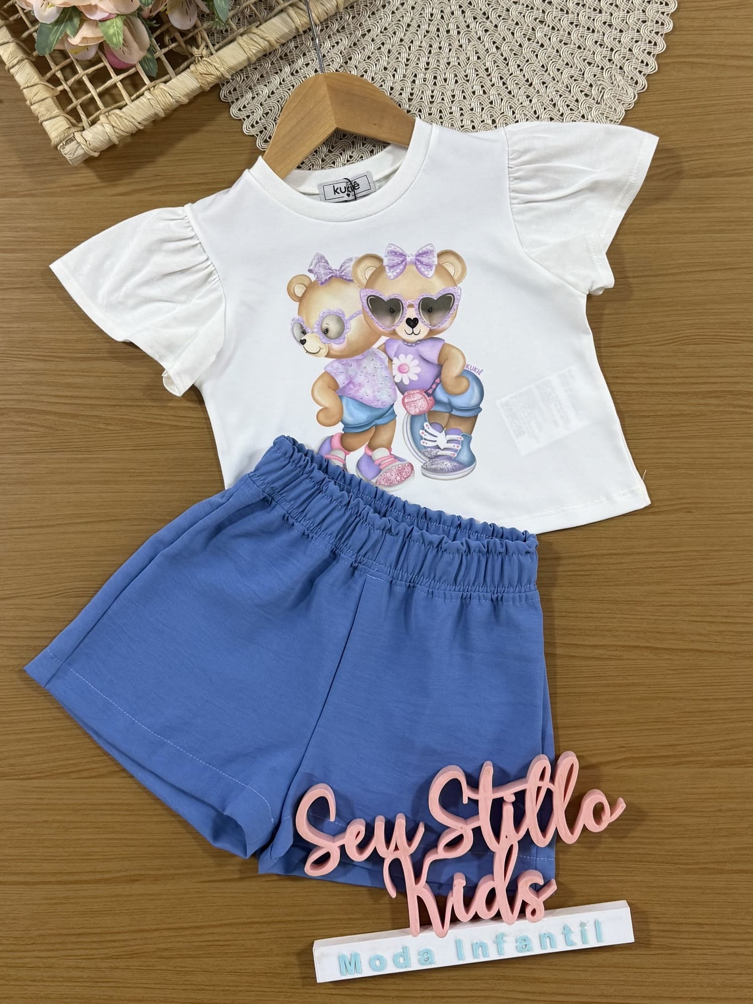 Conjunto Infantil Kukiê com Shorts Azul e Blusa Manga Curta Ursinhos