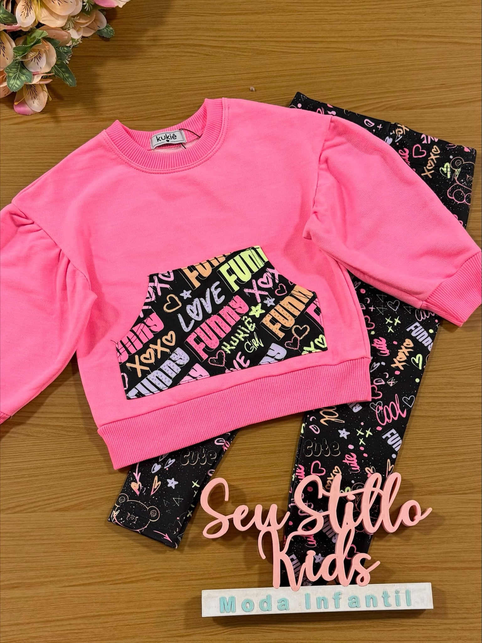 Conjunto Infantil Kukie Inverno Calça e Moletom Neon Fun