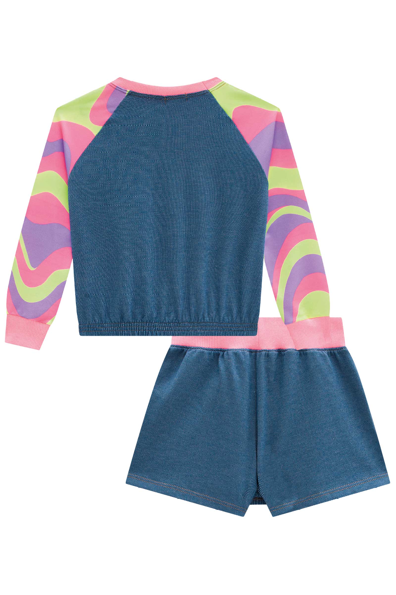 - Shorts Saia Malha Denim e Molecotton | 98% Algodão | 2% Elastano |
