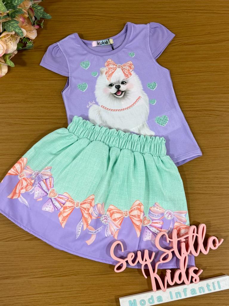 Conjunto Infantil Kukie Verão Com Saia e Blusa Cachorrinho