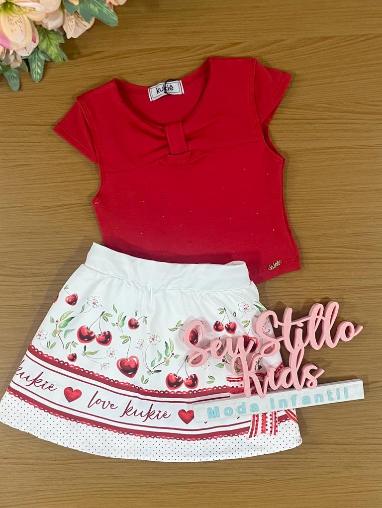 Conjunto Infantil Kukie Verão Com Saia e Blusa Cerejinha