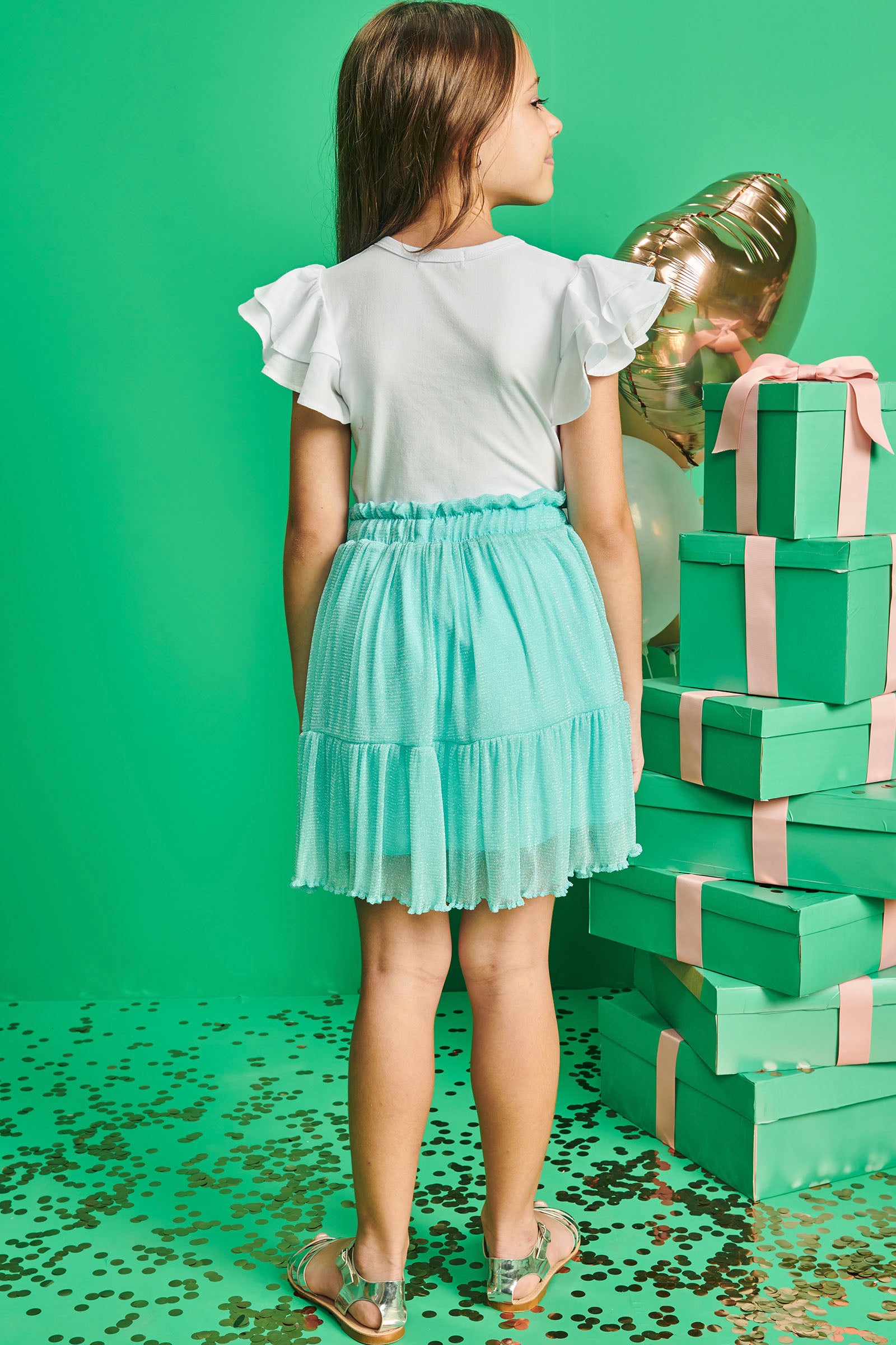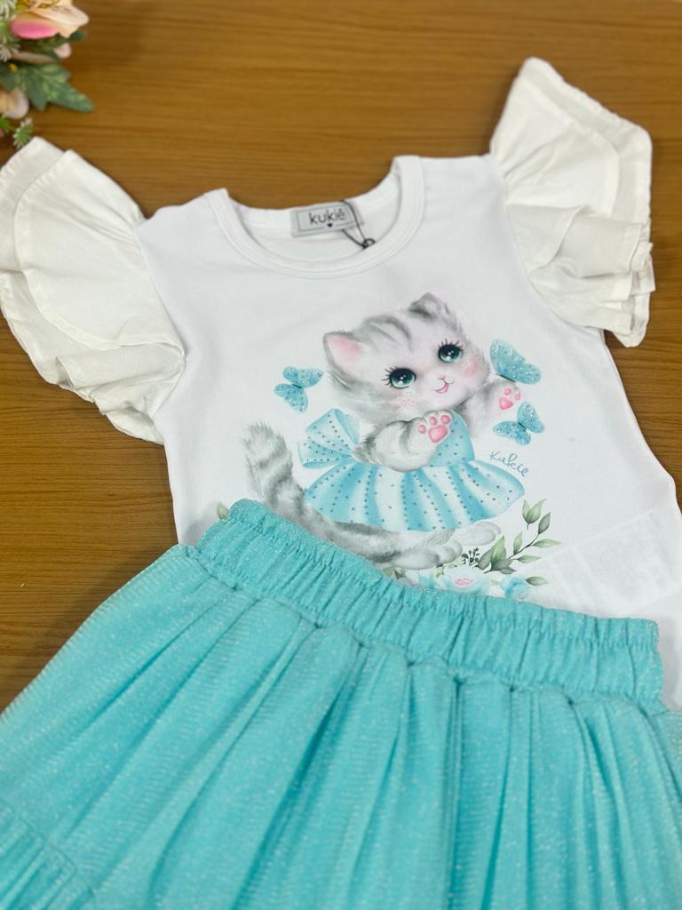 Conjunto Infantil Kukie Verão Com Saia e Blusa Gatinha Azul