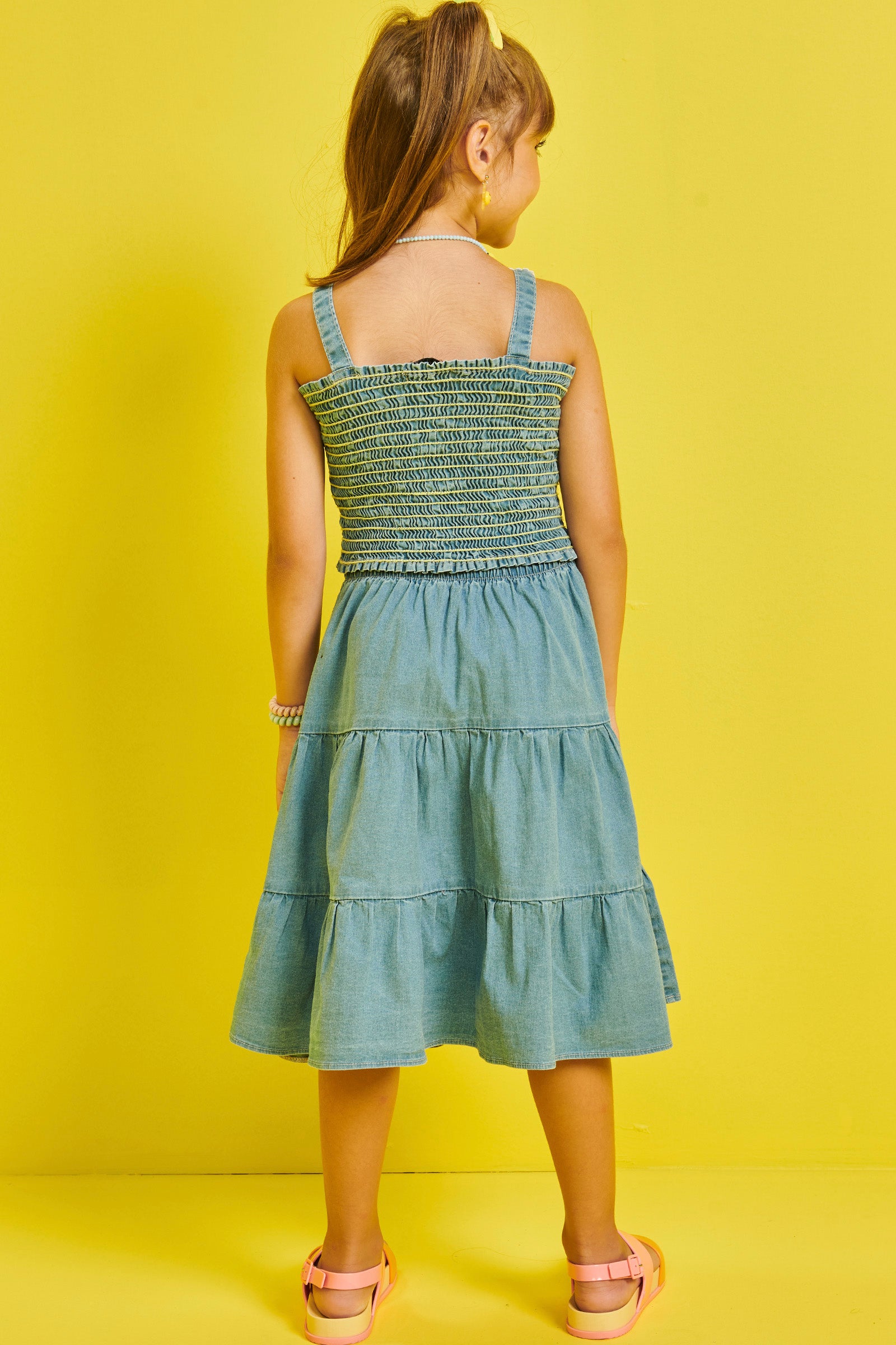 Conjunto Infantil Kukie Verão Com Saia Jeans e Top Margarida