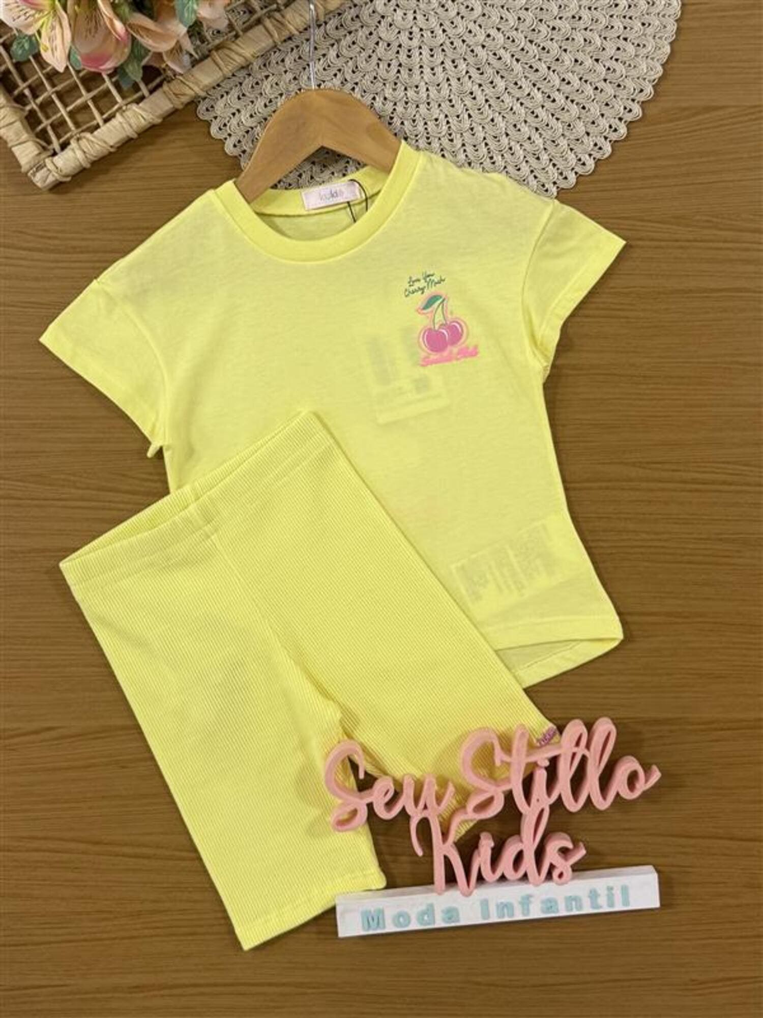 Conjunto Infantil Kukiê Verão com Shorts Ciclista e Blusa Amarela Cerejinha