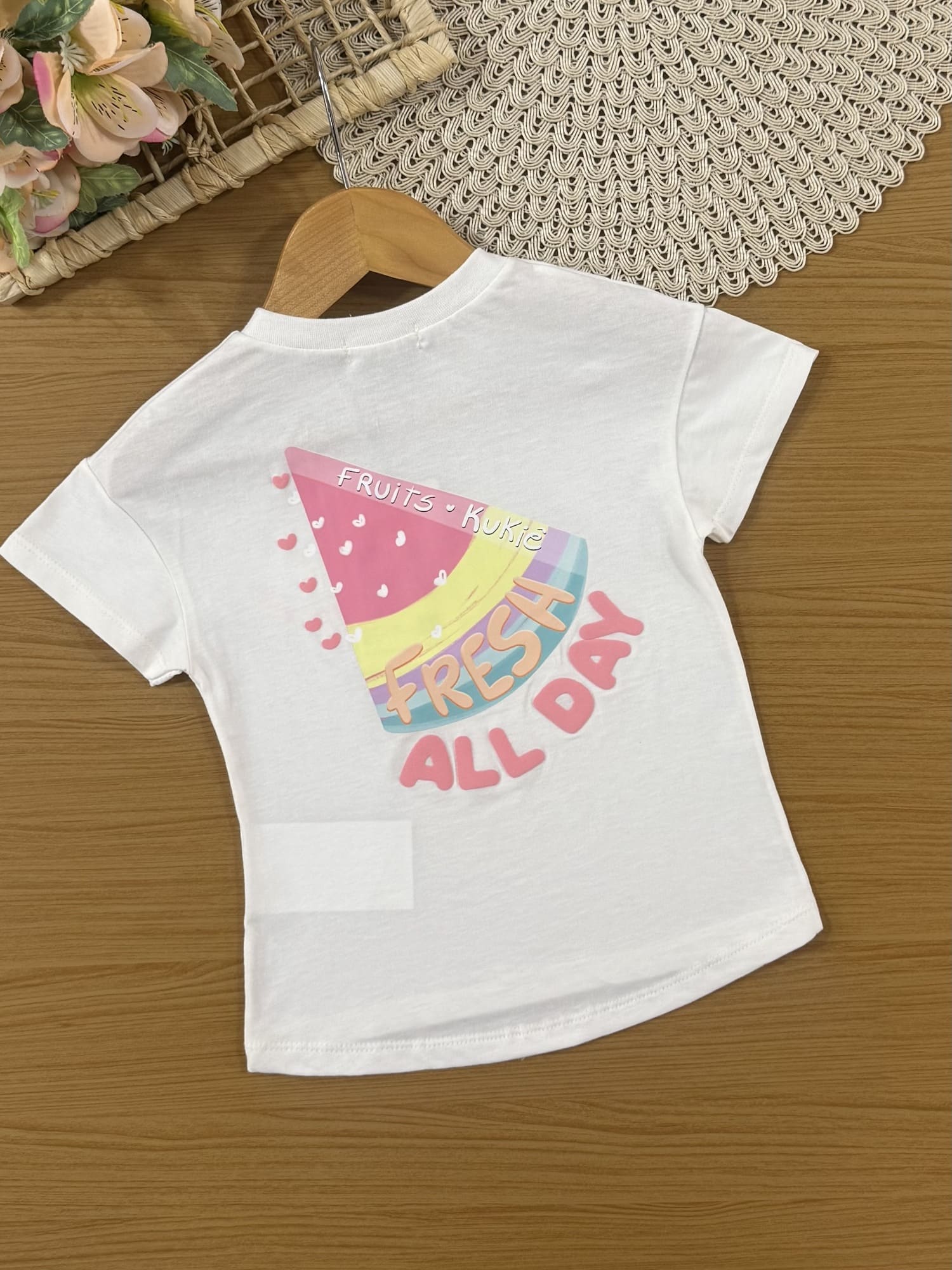 Conjunto Infantil Kukiê Verão com Shorts Ciclista Rosa e Blusa Branca Fresh
