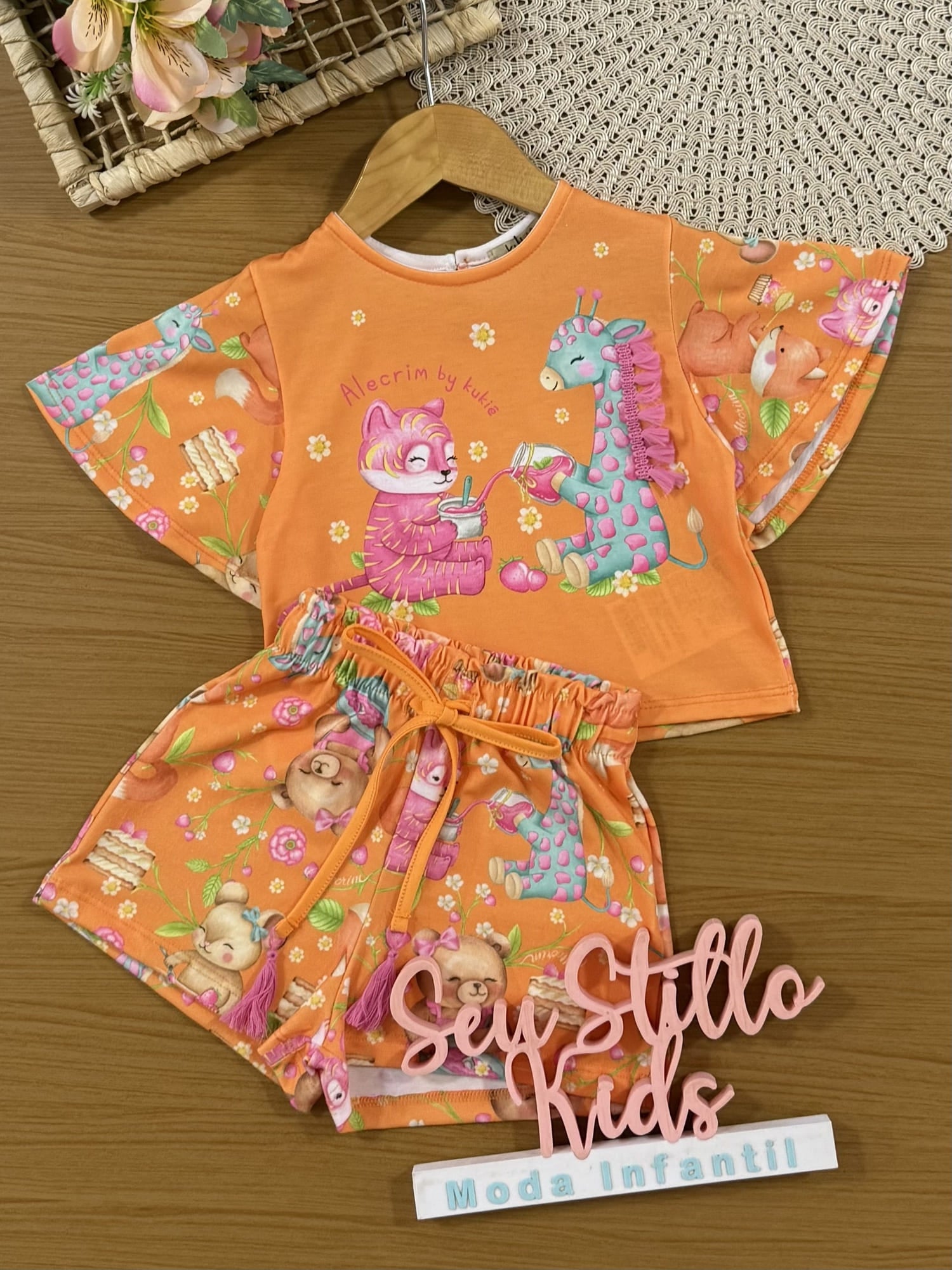 Conjunto Infantil Kukiê Verão com Shorts e Blusa Laranja Tigre