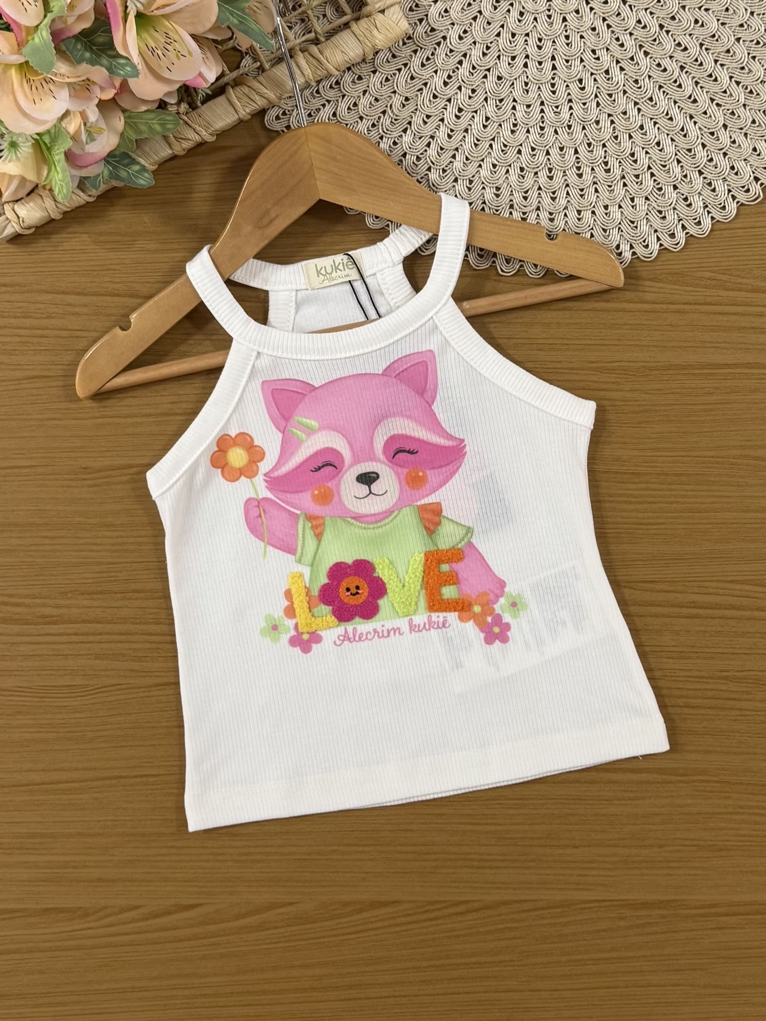 Conjunto Infantil Kukiê Verão com Shorts Verde e Regata Branca Guaxinim