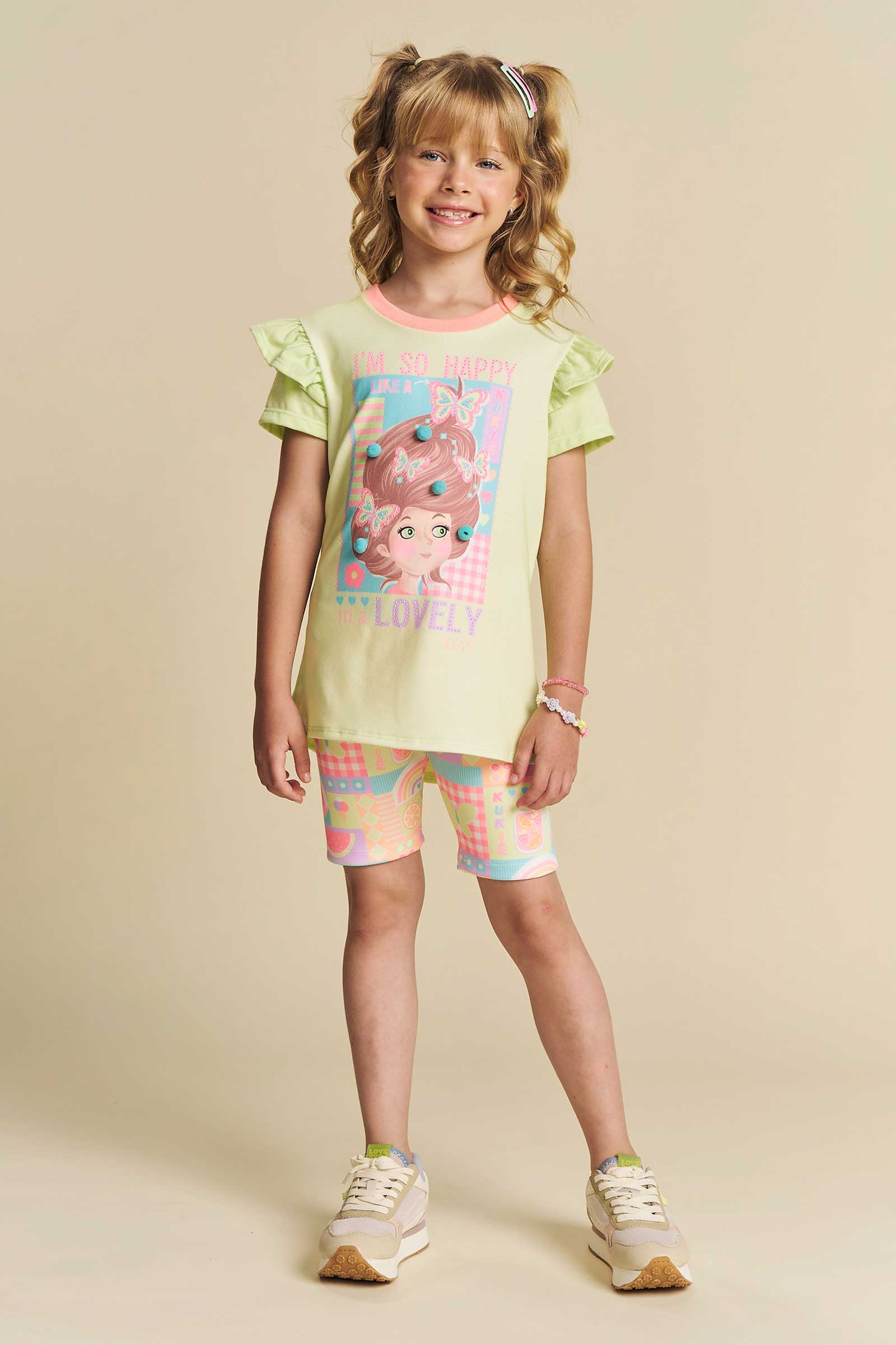 Conjunto Infantil Kukie Verão Shorts Ciclista e Blusa Borboletas