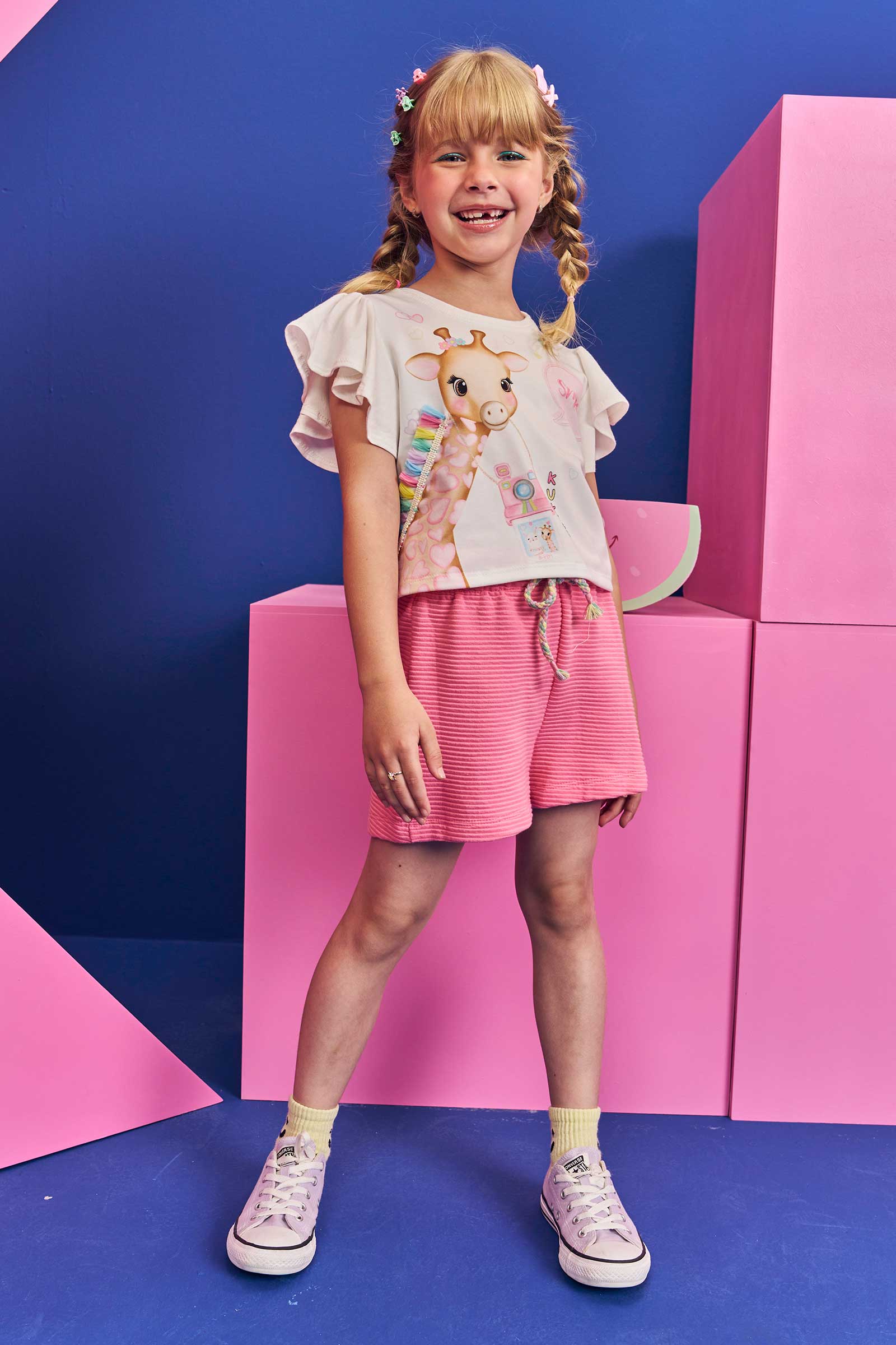 Conjunto Infantil Kukie Verão Shorts e Blusa Off Girafa