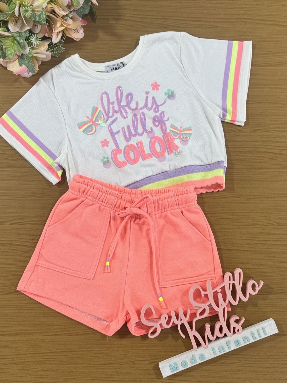 Conjunto Infantil Kukie Verão Shorts Laranja e Blusa