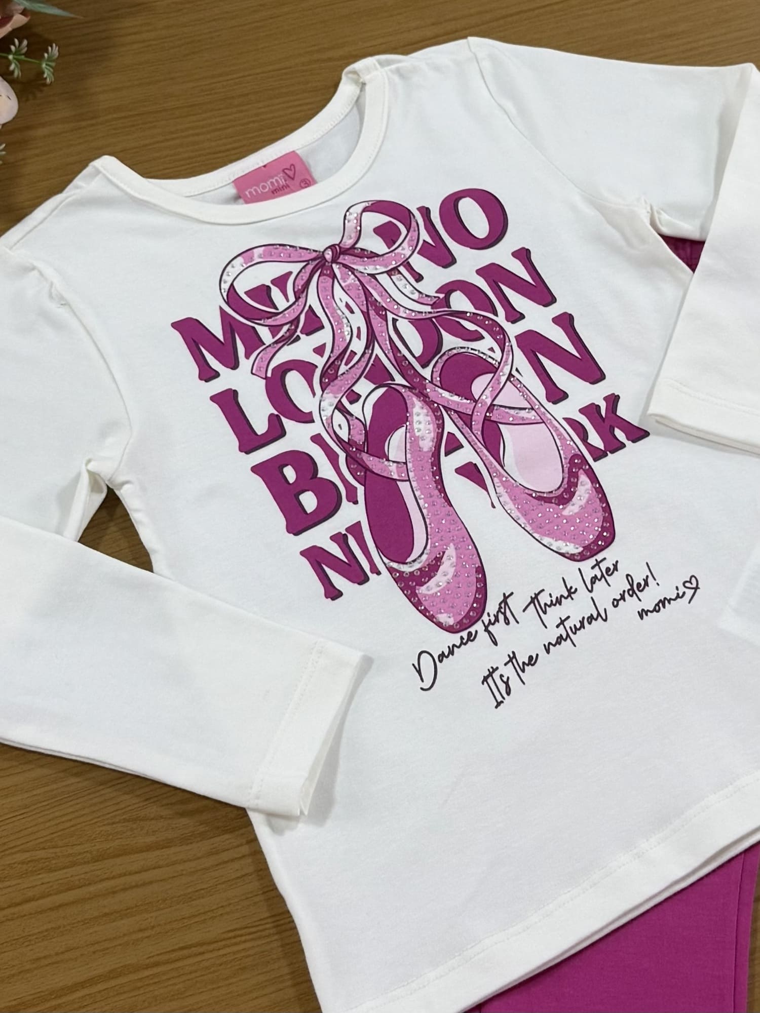 Conjunto Infantil Momi Inverno Calça e Blusa Branco Bailarina com Strass