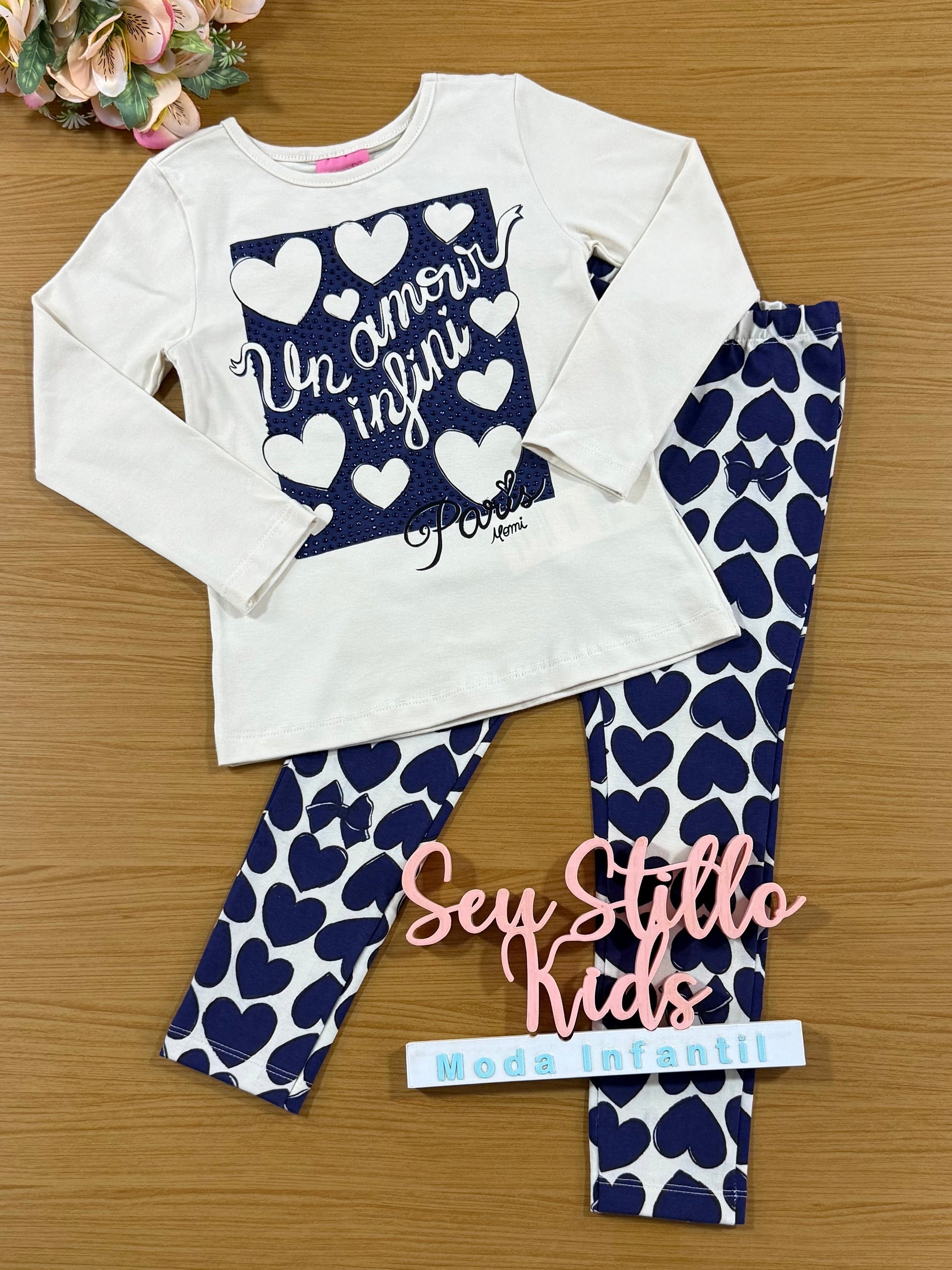 Conjunto Infantil Momi Inverno com Calça e Blusa Bege Corações