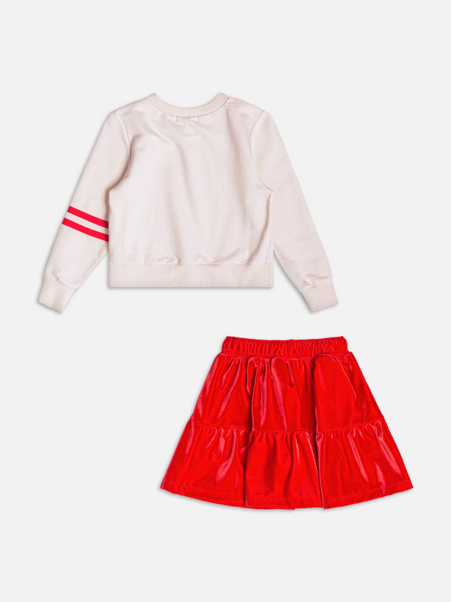 Conjunto Infantil Momi Inverno com Saia e Casaco Bege Ursinho Academy