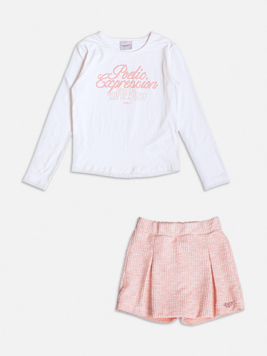 Conjunto Infantil Momi Inverno com Shorts Rosa e Blusa Manga Longa Branca com Strass
