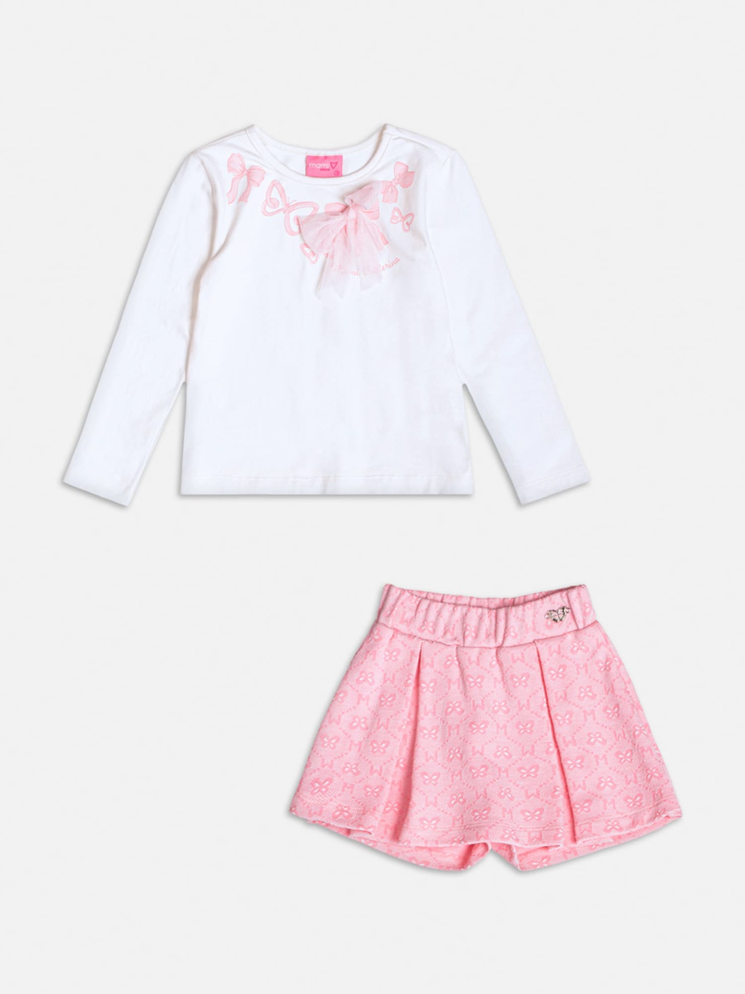 Conjunto Infantil Momi Inverno com Shorts Saia e Blusa Branca com Laço