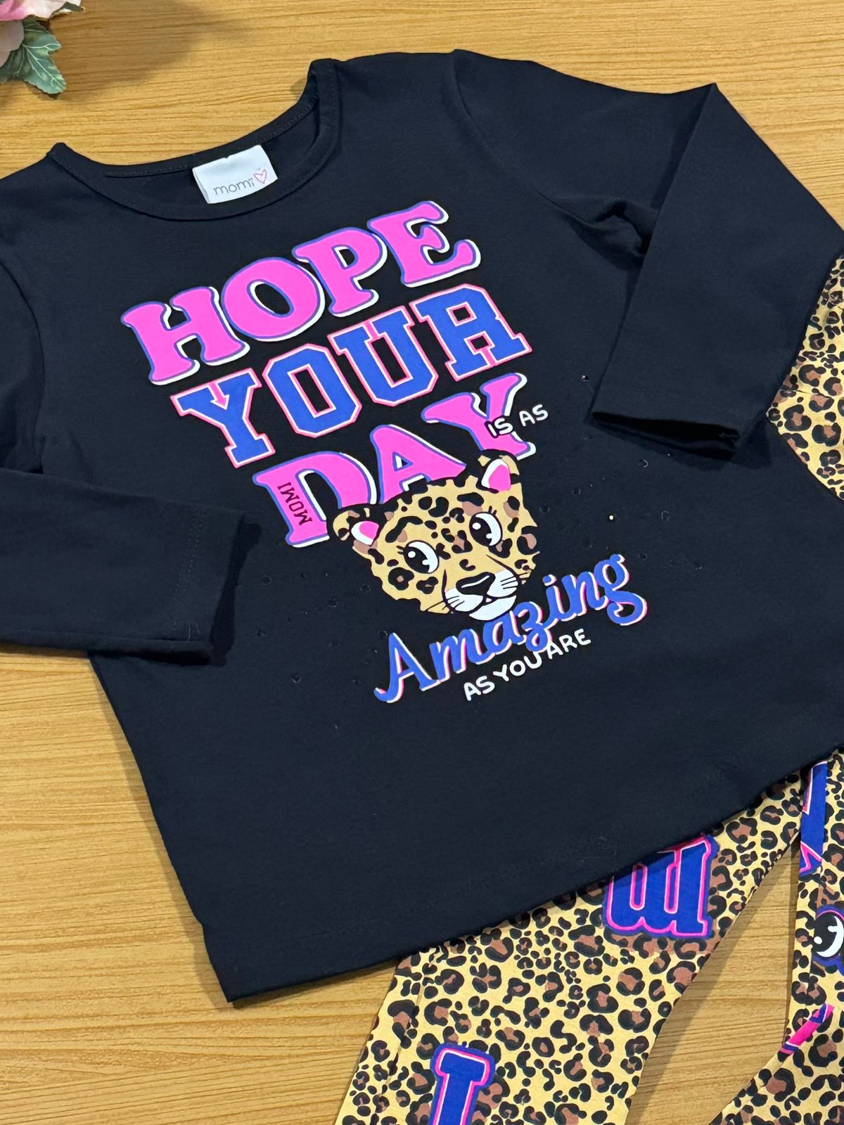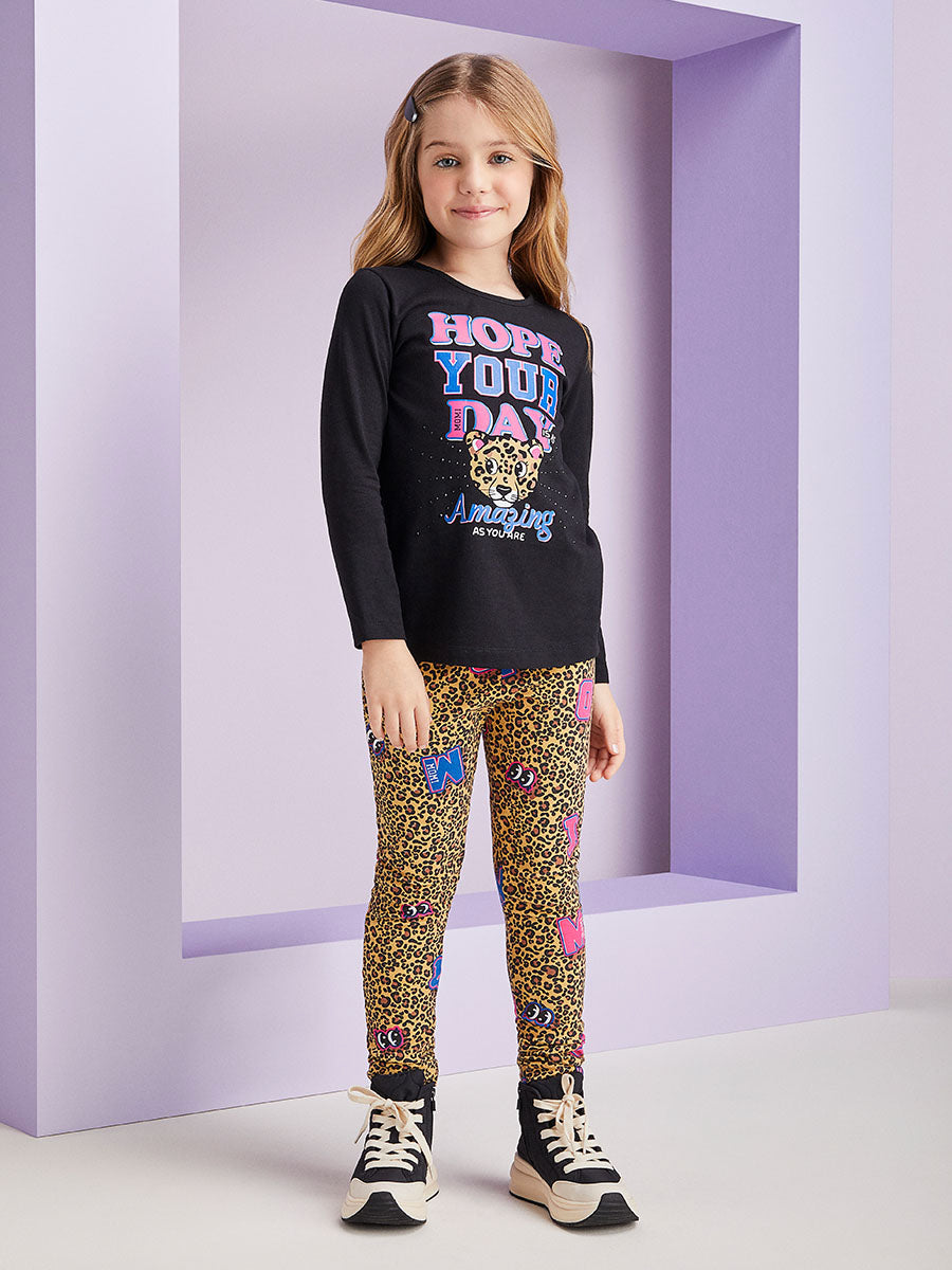 Conjunto Infantil Momi Inverno Legging Oncinha e Blusa Preta