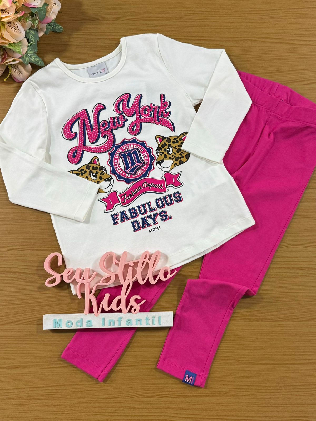 Conjunto Infantil Momi Inverno Legging Rosa e Blusa Oncinha