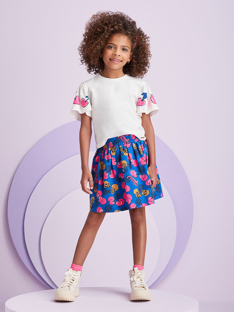 Conjunto Infantil Momi Inverno Saia e Blusa Branca Cereja