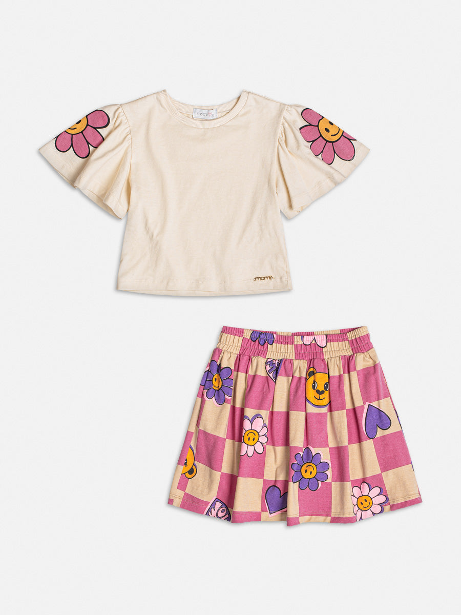 Conjunto Infantil Momi Inverno Saia e Blusa Manga Curta Florzinha