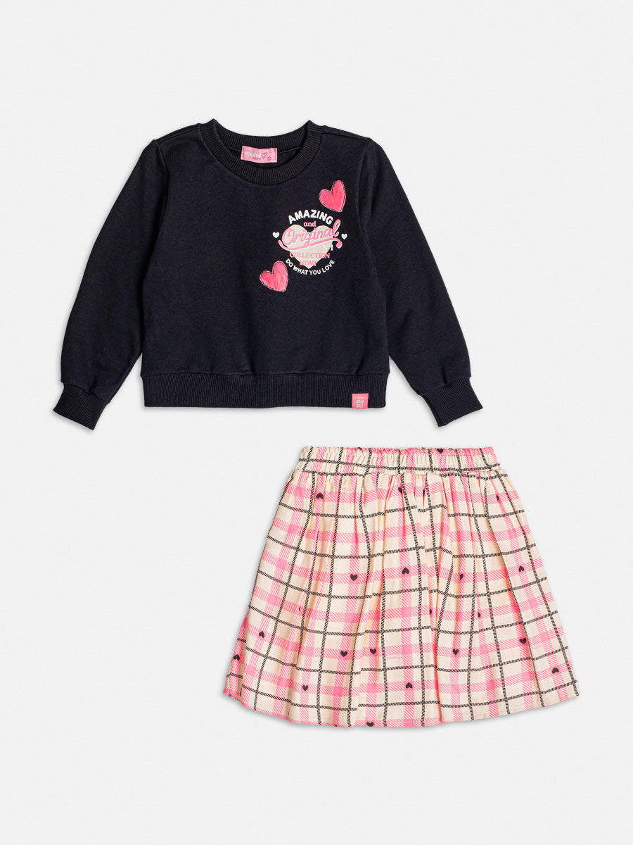 Conjunto Infantil Momi Inverno Saia Xadrez e Moletom Love