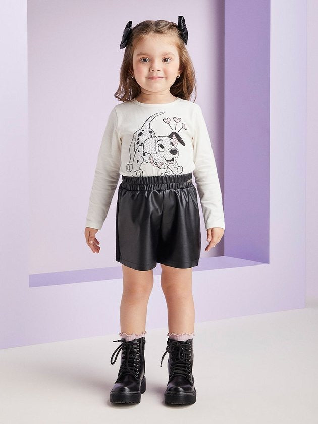 Conjunto Infantil Momi Inverno Short Preto e Blusa 101 Dálmatas
